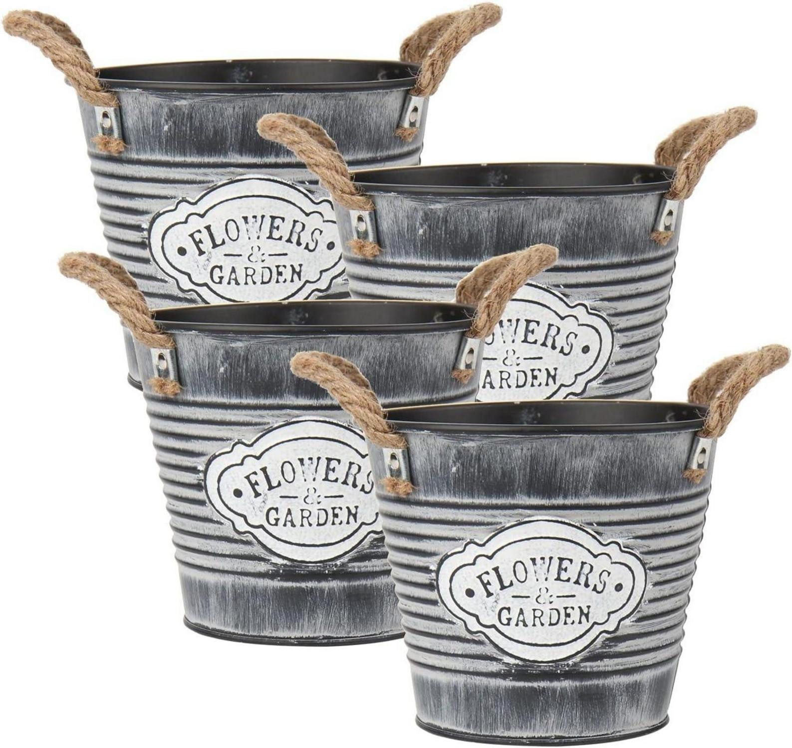 Die Oairse Blumentöpfe aus verzinktem Stahl sind perfekt für moderne Dekorationen, sowohl drinnen als auch draußen. Die 4er-Set Töpfe sind ein echter Hingucker und bringen eine reizvolle Vintage-Note in jeden Raum. Das Antik-Finish verleiht den Blumentöpfen ein charmantes Aussehen und lässt sie wie echte Schätze aus vergangenen Zeiten wirken.