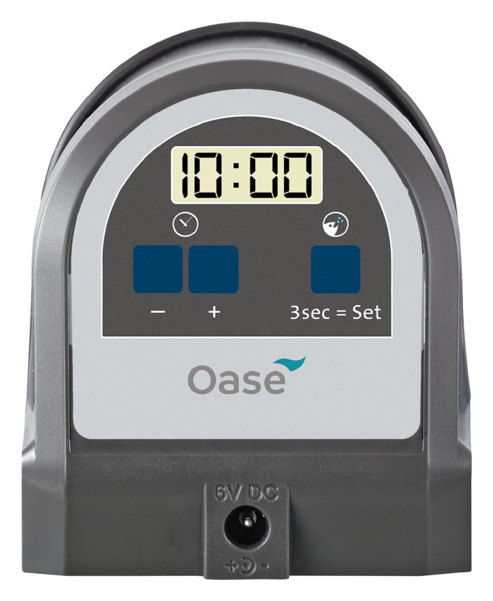 Der Oase FishGuard Futterautomat lässt sich mit bis zu 12 Futterladungen täglich programmieren. Die Programmierung ist dank des übersichtlichem LCD-Display besonders einfach. Bei großen und fischreichen Aquarien bis zu viermal täglich mit maximal drei Dosierungen pro Fütterung einstellen.