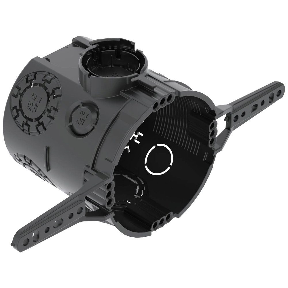 Unterputz-Gerätedose mit Nagellaschen, für den Einsatz in Mauerwerk mit einer Einbautiefe von mindestens 66 mm.