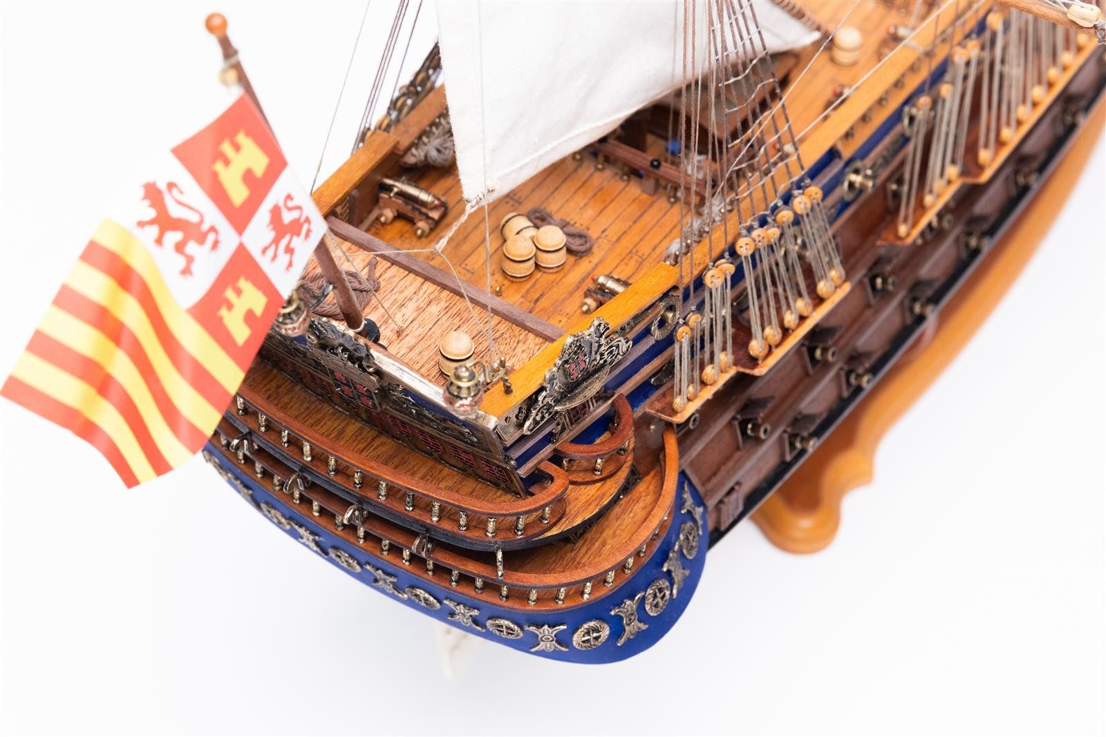 Dieses Schiff wurde 1716 in den Werften von San Feliú de Gixols gebaut. Es handelt sich um ein erstklassiges Kriegsschiff mit drei Decks. Das Design umfasst eine robuste Konstruktion mit doppelten Innen- und Außenplanken, die dem Rumpf große Stabilität verleihen.