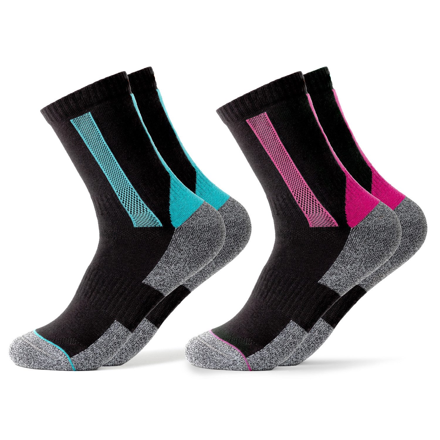 Entdecke "Gerlinde" - unsere Wandersocken für Damen aus Baumwoll-Polyamid Gemisch mit Elasthan. Keine Blasen, kein Schwitzen, keine Druckstellen dank gepolsterter Sohle und speziellen Kühlungszonen. Ideal für Wanderungen, Nordic Walking und Spaziergänge - Sommer und Winter. Das perfekte Geschenk für Outdoor-Enthusiasten.
