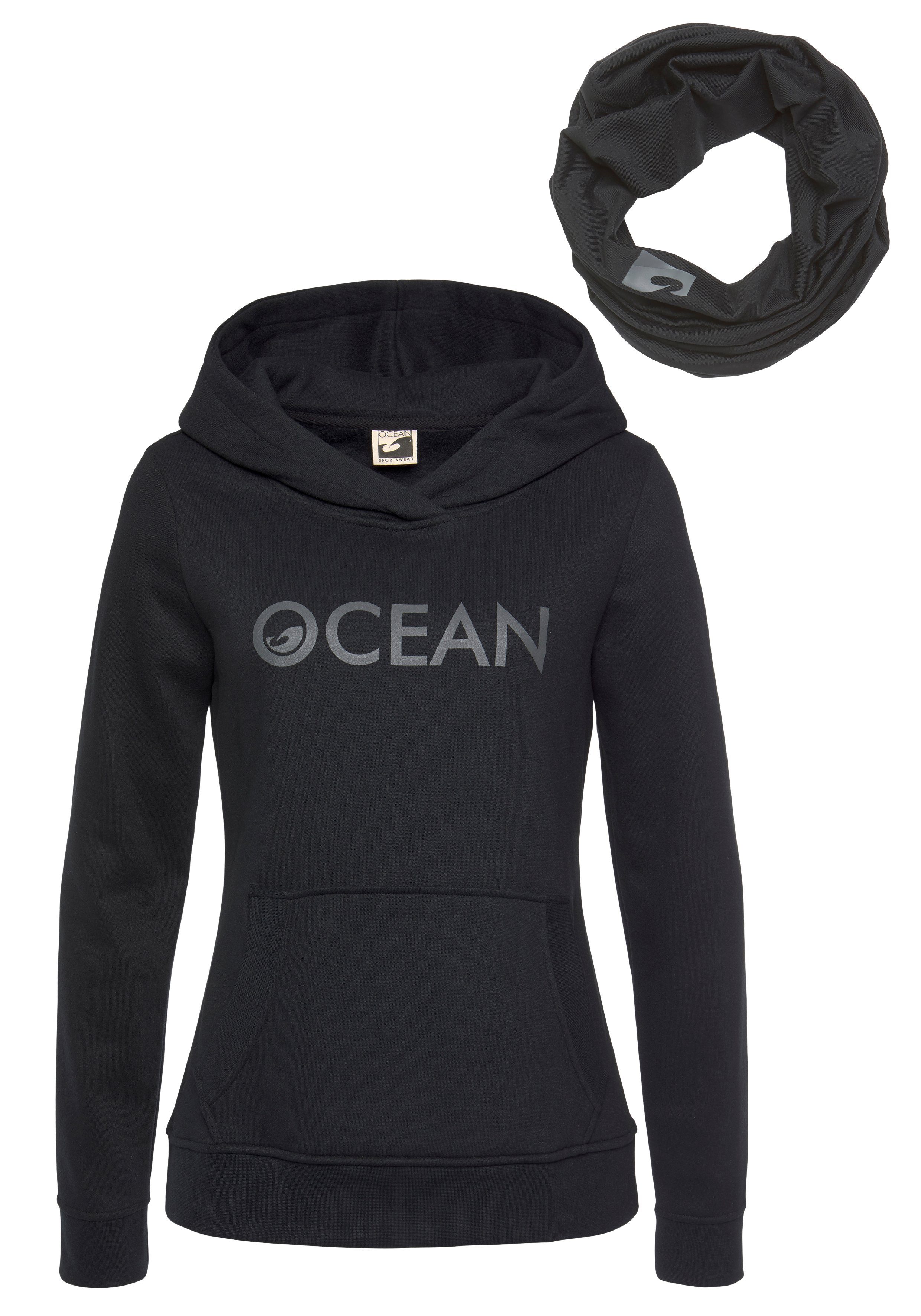Mit dem Kapuzensweatshirt »mit Multifunktionaler Tube Schal« von Ocean Sportswear lassen sich einfach neue Styles zusammenstellen. Durch den Logodruck hat das Sweatshirt eine individuelle und trendige Note. Die langen Ärmel enden in einem Rippbündchen, das für guten Sitz sorgt. Dieses Sweatshirt ist hüftlang sowie basic geschnitten, wodurch dein Oberkörper locker umspielt wird. Die am Bauch aufgenähte Kängurutasche bietet Platz, um die Hände zu wärmen und macht den bequemen Hoodie-Look komplett.