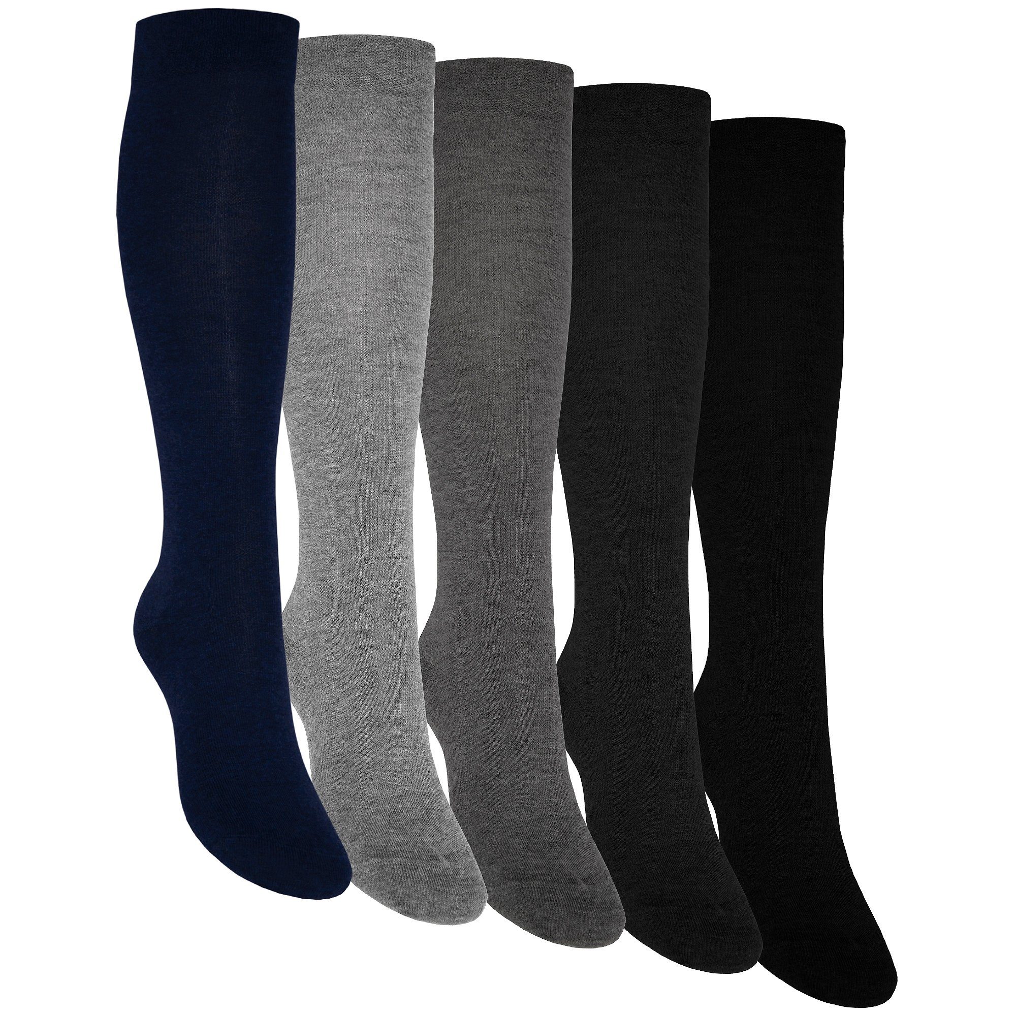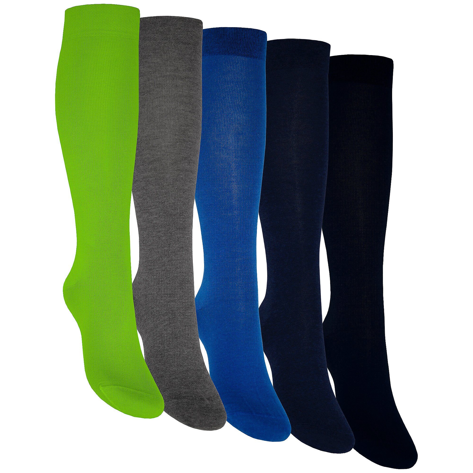 5 Paar hochwertige Kniestrümpfe für Damen und Herren in verschiedenen Farbpacks.