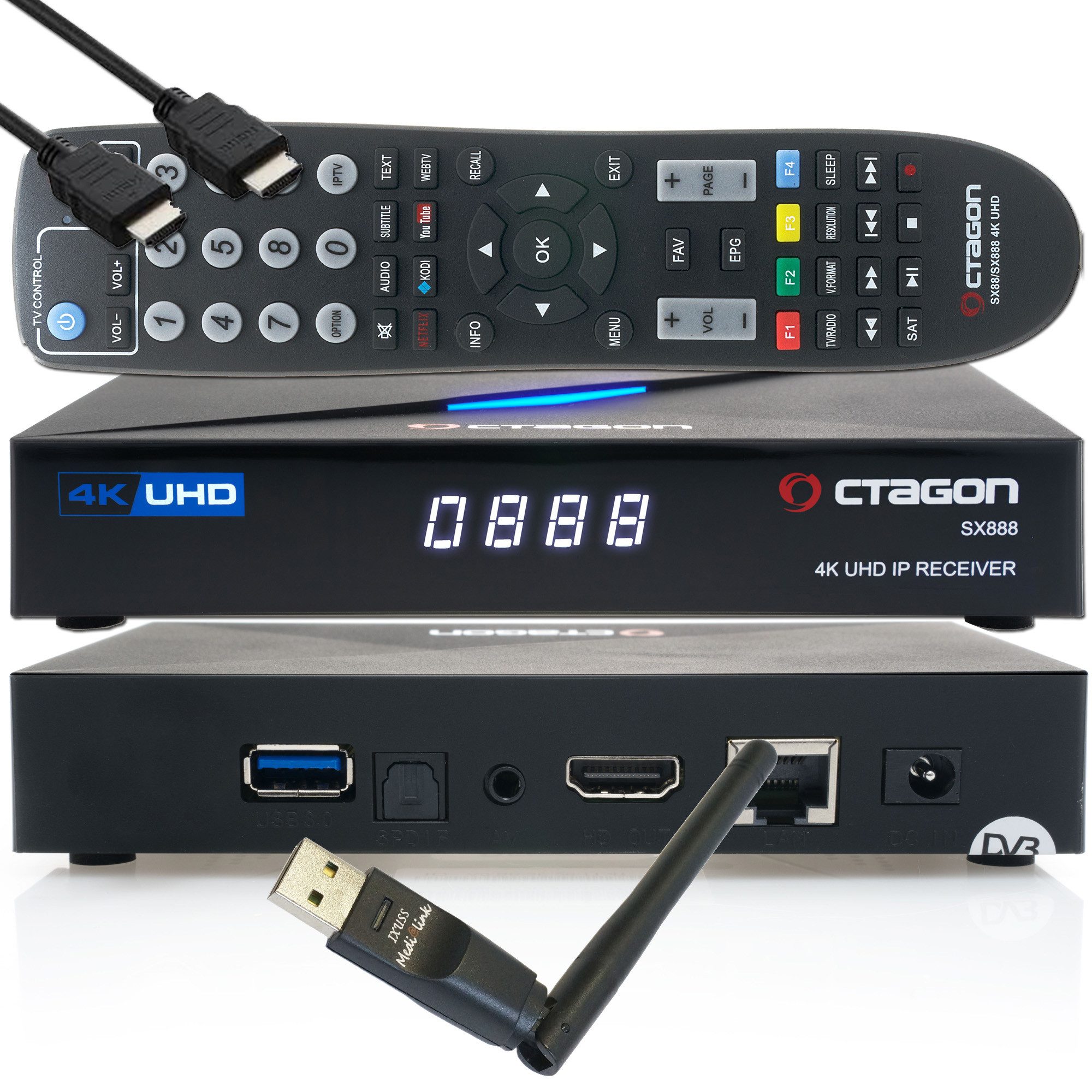 Lieferumfang | SX888 4K IP + WLAN USB Adapter - IR Empfänger - Fernbedienung - Batterien - HDMI Kabel - Netzteil DC12V |
