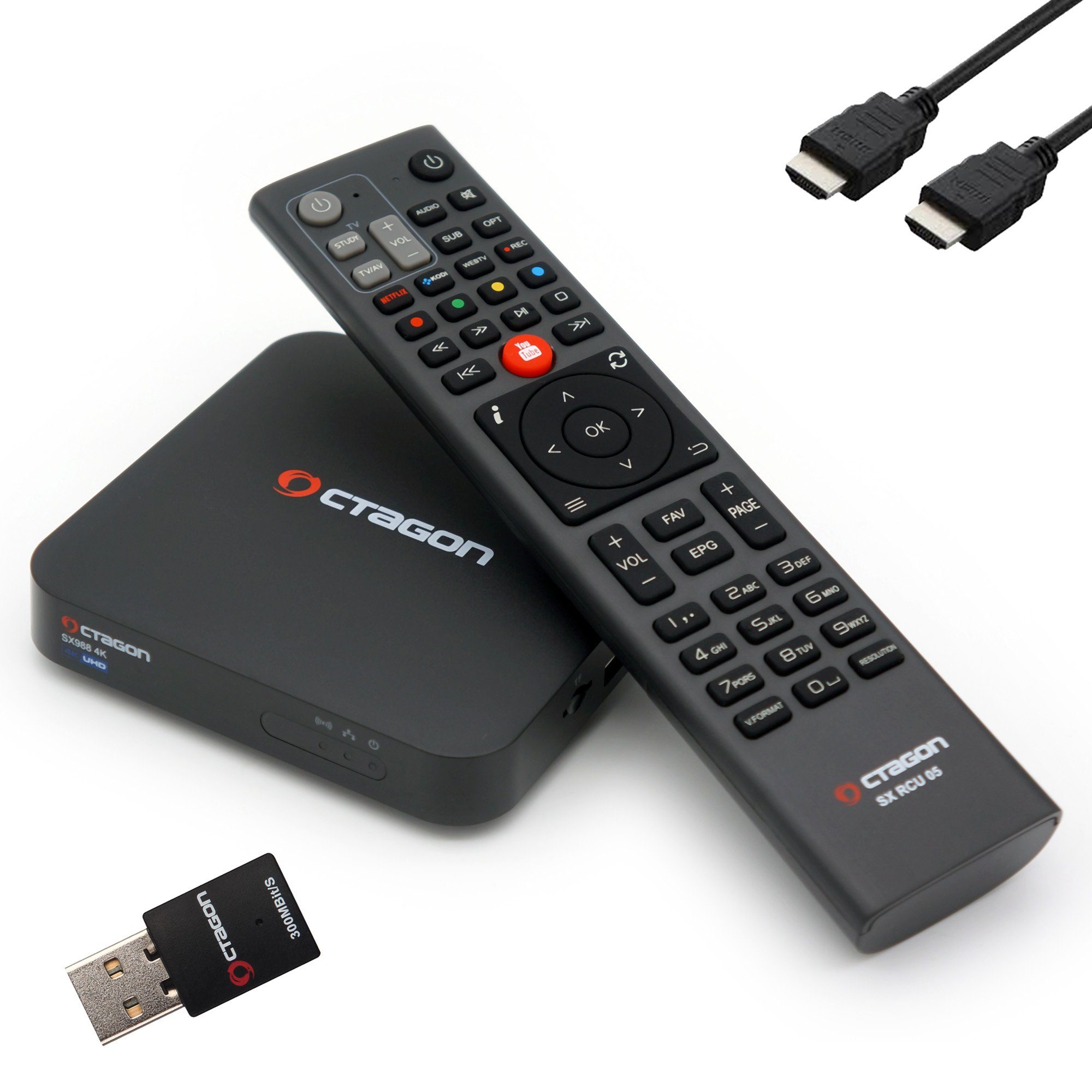 Lieferumfang | 1x SX988 4K TV IP Smart TV Box, 1x 300 Mbit/s WLAN USB Stick, 1x EasyMouse HDMI-Kabel, 1x Fernbedienung, 1x IR Sensor, 1x Quickmanual, 1x Netzteil |