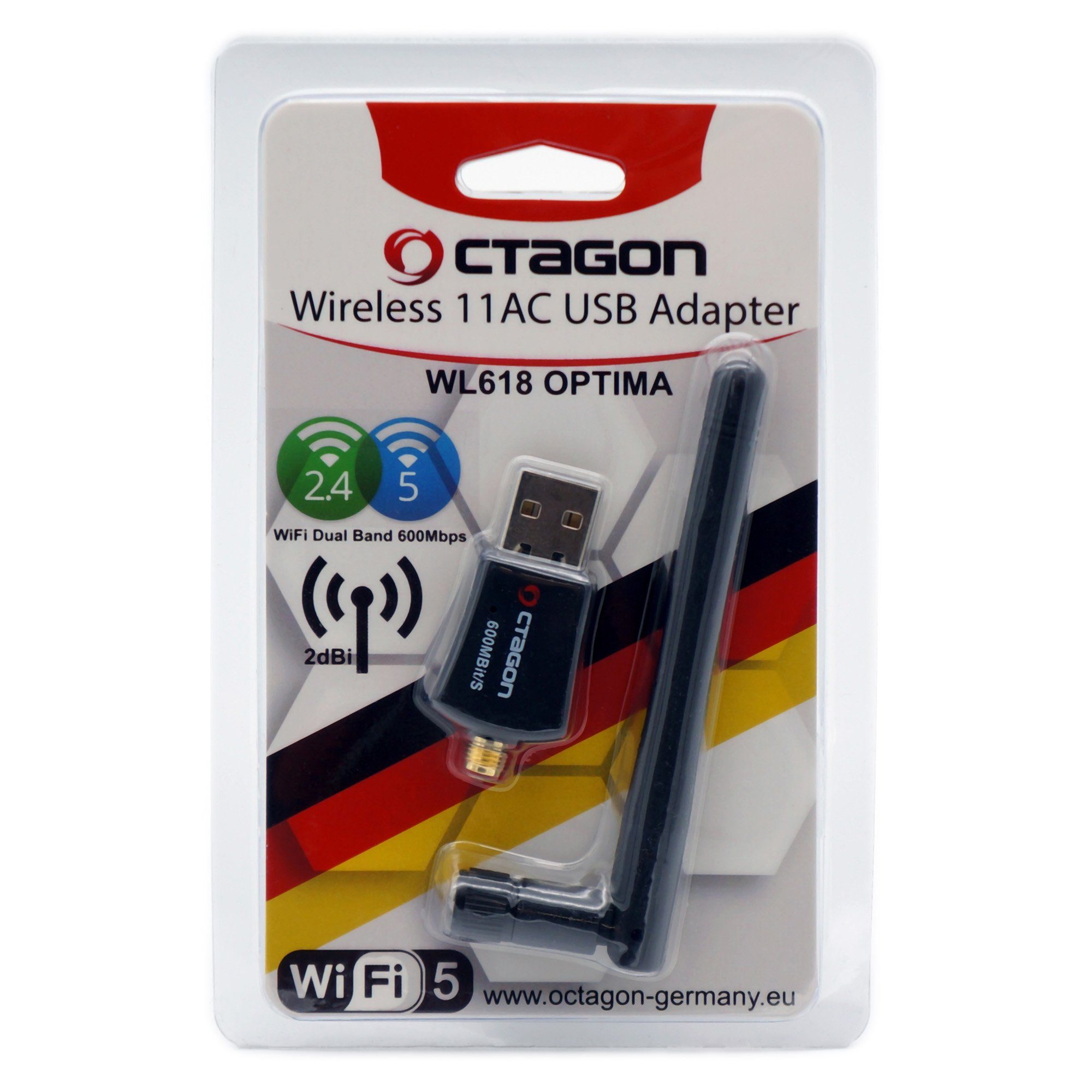 Lieferumfang | 1x OCTAGON WL618 Optima 600 Mbit/s WiFi Stick mit 2.4 & 5 G Unterstützung |