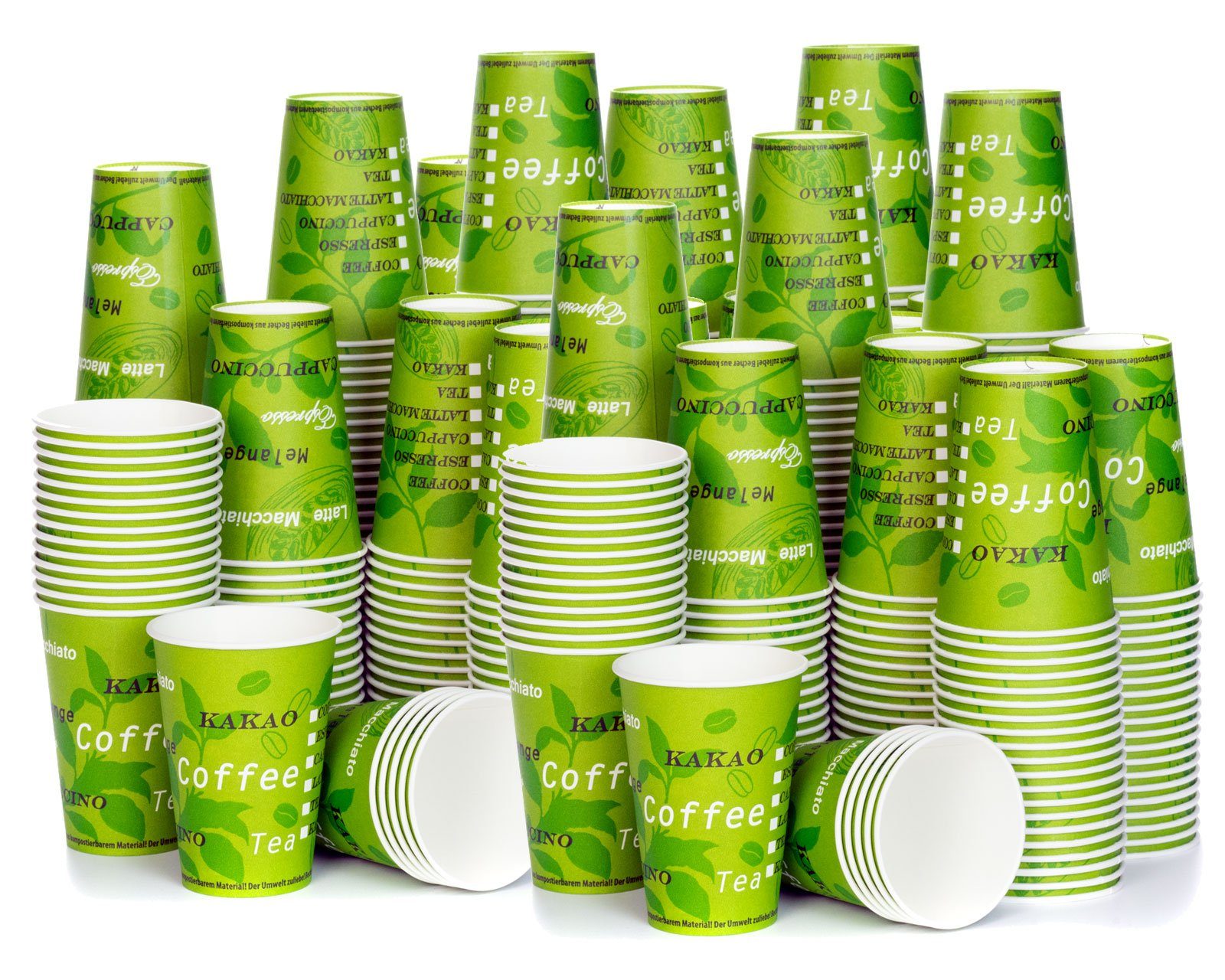 500x Qualitäts-Trinkbecher aus extra fester Pappe mit Innenbeschichtung in schöner Bio-Optik