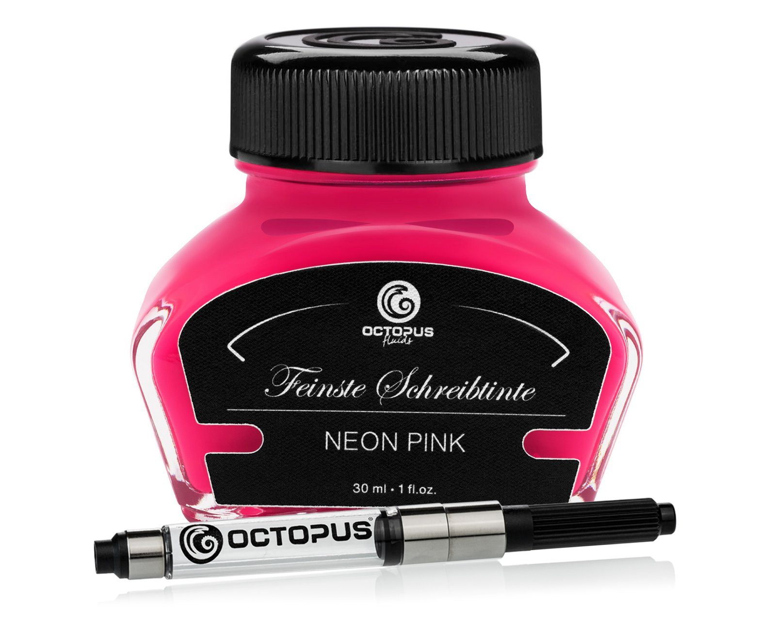Textmarkertinte "Octopus Fluids Neon Pink" in floureszierendem Neonpink für Füllhalter und Schreibfedern mit praktischem Tintenkonverter