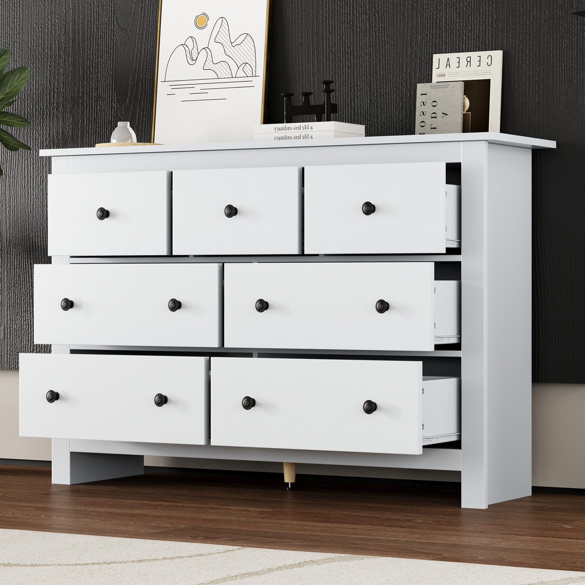 Robuste und langlebige Konstruktion - die Anrichte mit Stauraum wird von hochwertigen Spanplatten getragen, die für Stabilität sorgen. Perfektes Aussehen, Sicherheit und Umweltschutz, lange Lebensdauer. [LARGE STORAGE SPACE] - Zwei Schubladengrößen, drei 44,8*21,5cm Schubladen und vier 21,1*68,2cm Schubladen.