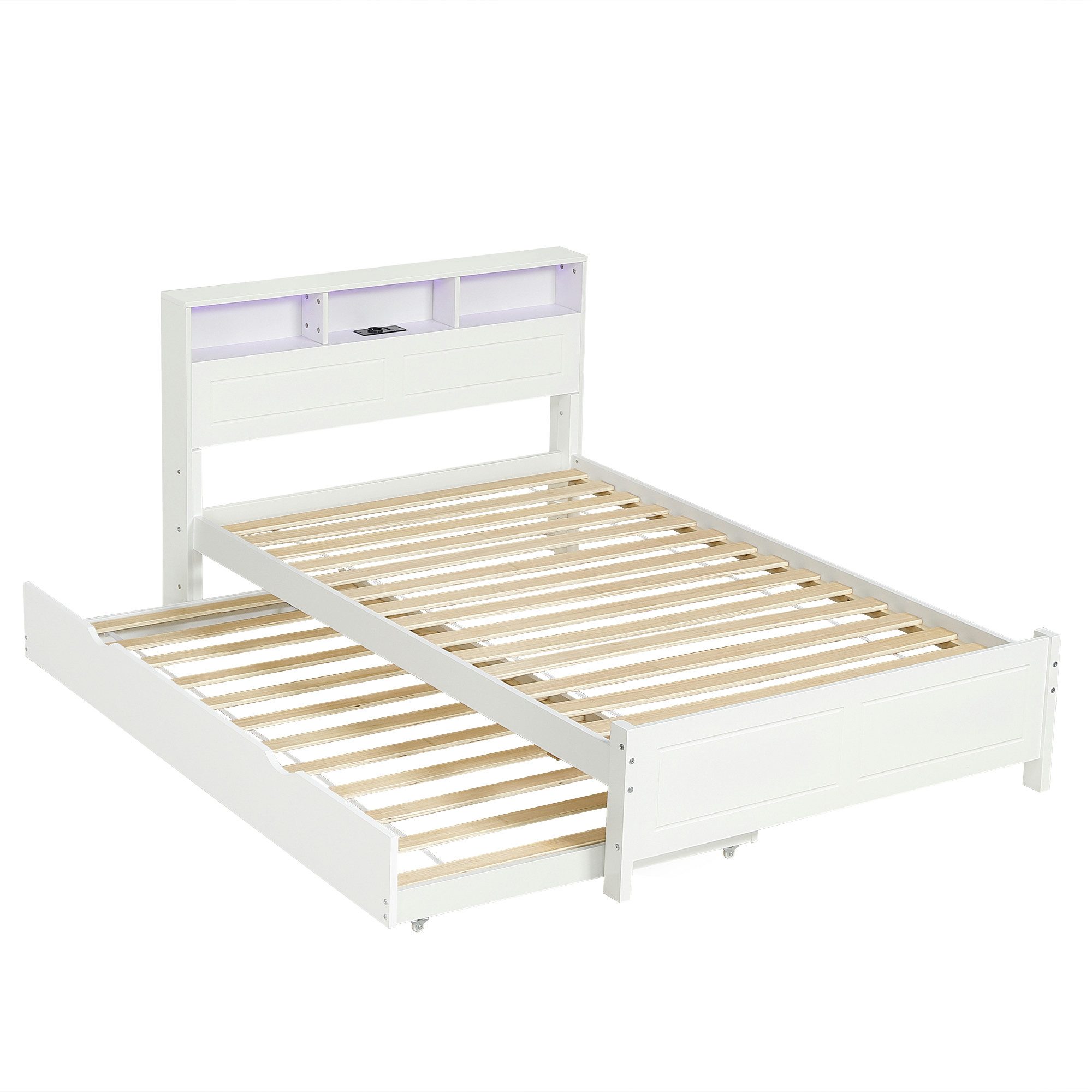 Doppelbett, Flachbett, Familien-Spleißbett, Mit ausziehbarem Bett, Kopfteil-Aufbewahrung, Rahmen aus Kiefer, Kiefer+MDF, Weiß, 120x200&90*190cm