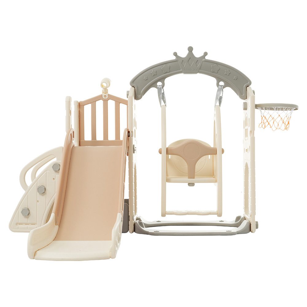 5-in-1 Multifunktionales Kinderspielset mit Schaukel, Rutsche, Kletterleiter, Basketballkorb, Teleskop und Aufbewahrungsbox – Perfekter Spielplatz für drinnen und draußen