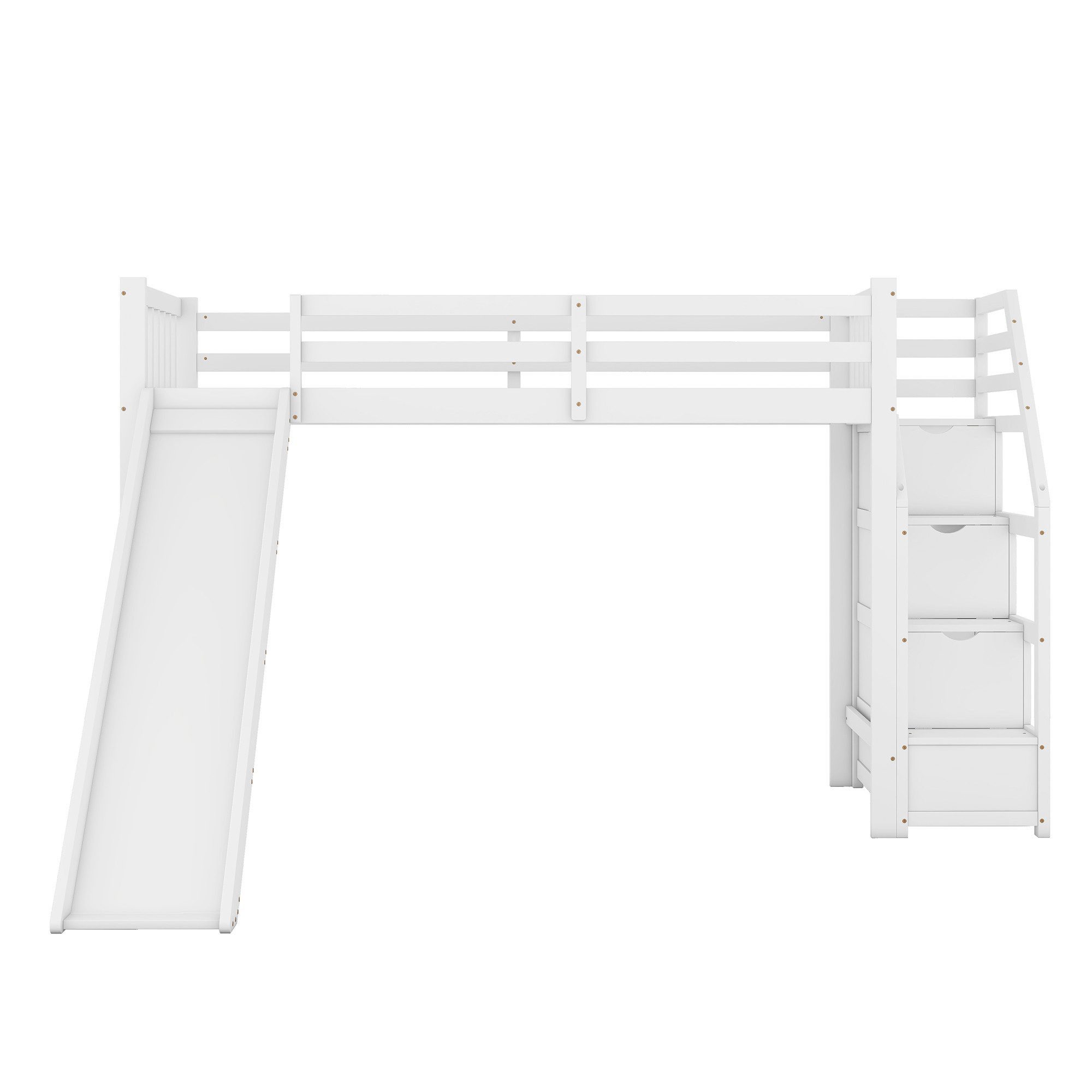 Ausgestattet mit einer Rutsche: Dieses Hochbett ist mit einer Rutsche ausgestattet, die das Ein- und Aussteigen aus dem Bett bequemer und interessanter macht und den Spiel- und Entdeckungsdrang der Kinder befriedigt sowie den Spaß an der Benutzung des Bettes erhöht.