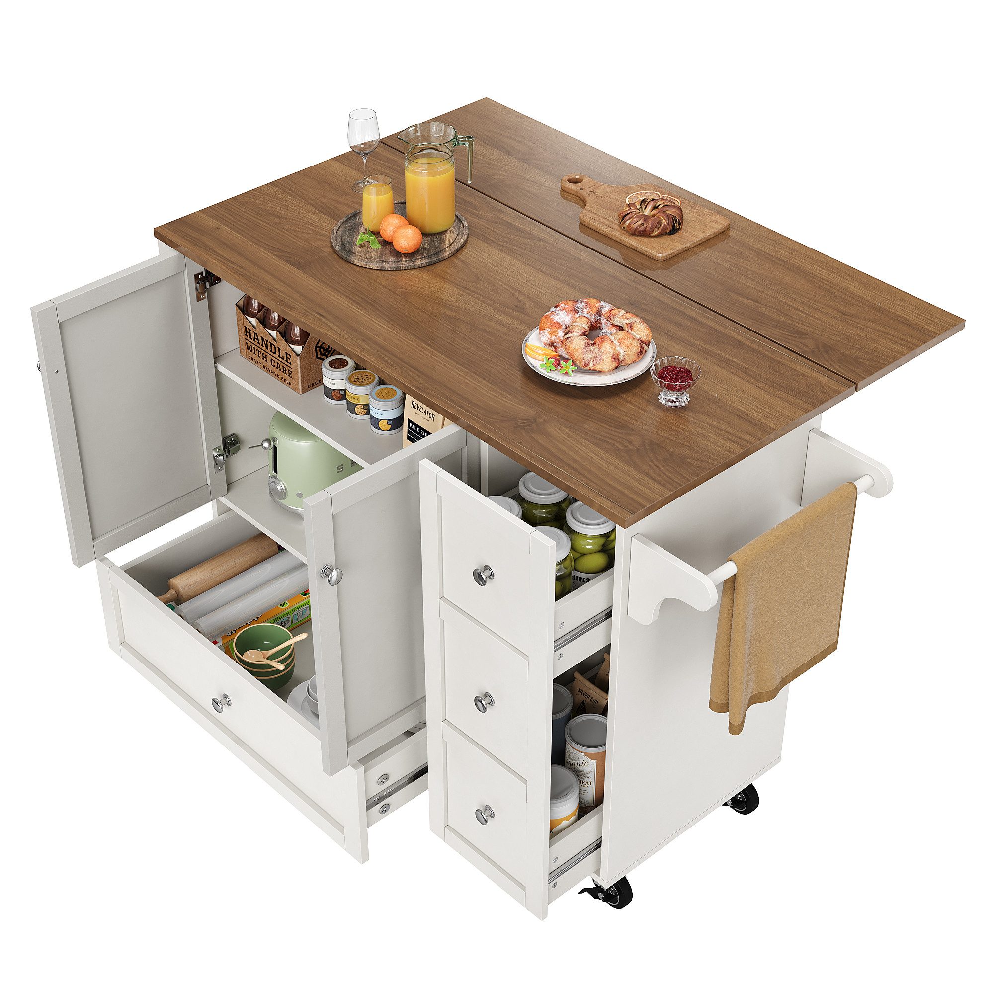 Bequemer Stauraum: Dieser Besteckwagen hat 3 Schubladen (1 unten, 2 rechts), 2 Schranktüren und ist mit einem Gewürzregal und einem Handtuchhalter ausgestattet, die viel Stauraum für Besteck, Gewürze und andere Küchenutensilien bieten.