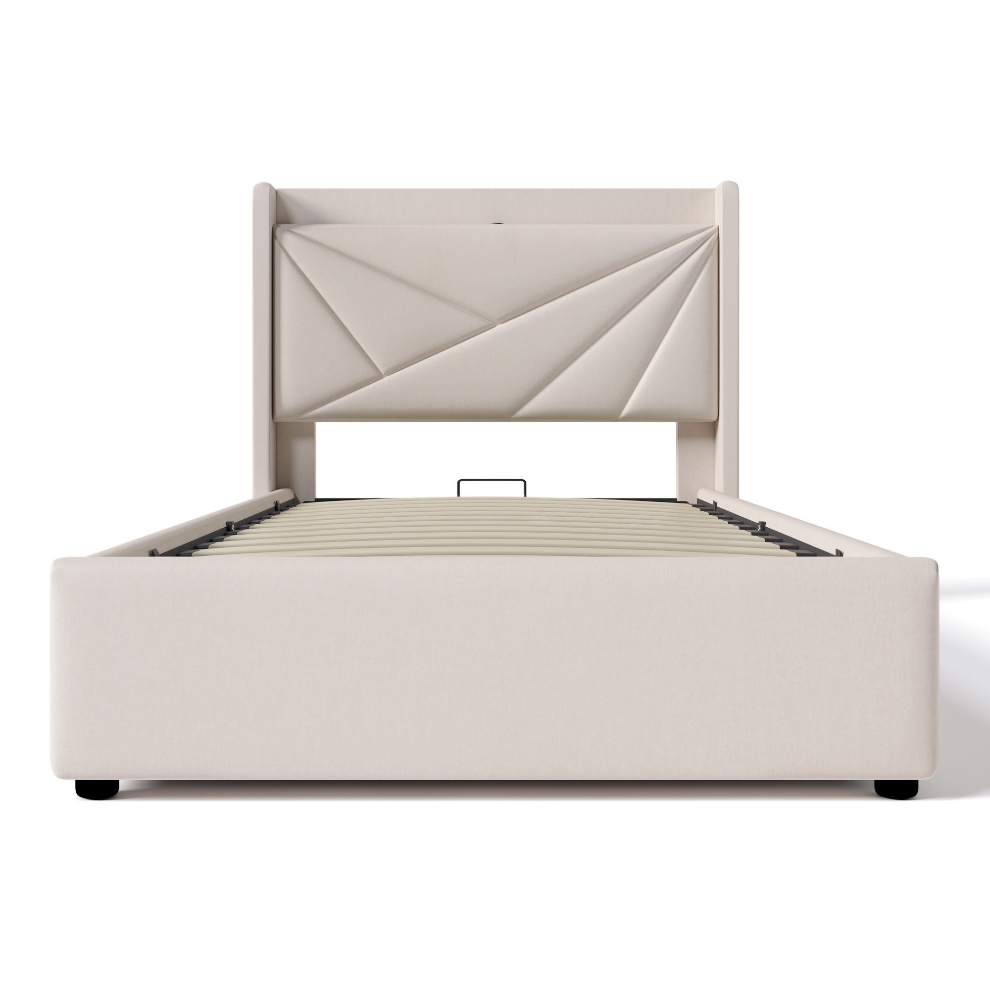 Integrierte Ladefunktion: Die Ladeanschlüsse sind USB und Typ-C. Außerdem haben wir eine integrierte Ladefunktion, die es Ihnen ermöglicht, Ihre elektronischen Geräte wie Smartphones, Tablets oder direkt am Kopfende des Bettes aufzuladen.
