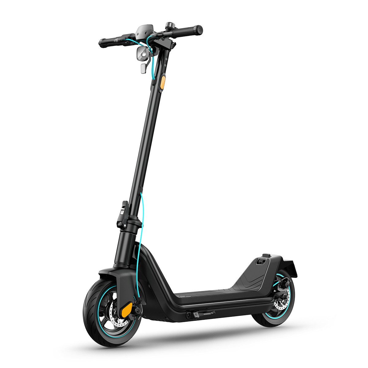 Das Dreifach-Bremssystem aus Scheibenbremse am Hinterrad und elektrischer Motor- sowie Scheibenbremse am Vorderrad sorgt für eine optimale Bremsleistung und eine erhöhte Reichweite. Die elektrische Motorbremse am Vorderrad erzeugt während des Bremsens Energie, die in den Akku zurückfließt und die Reichweite deines Elektrorollers noch weiter erhöht. So bist du nicht nur entspannt und sicher unterwegs, sondern