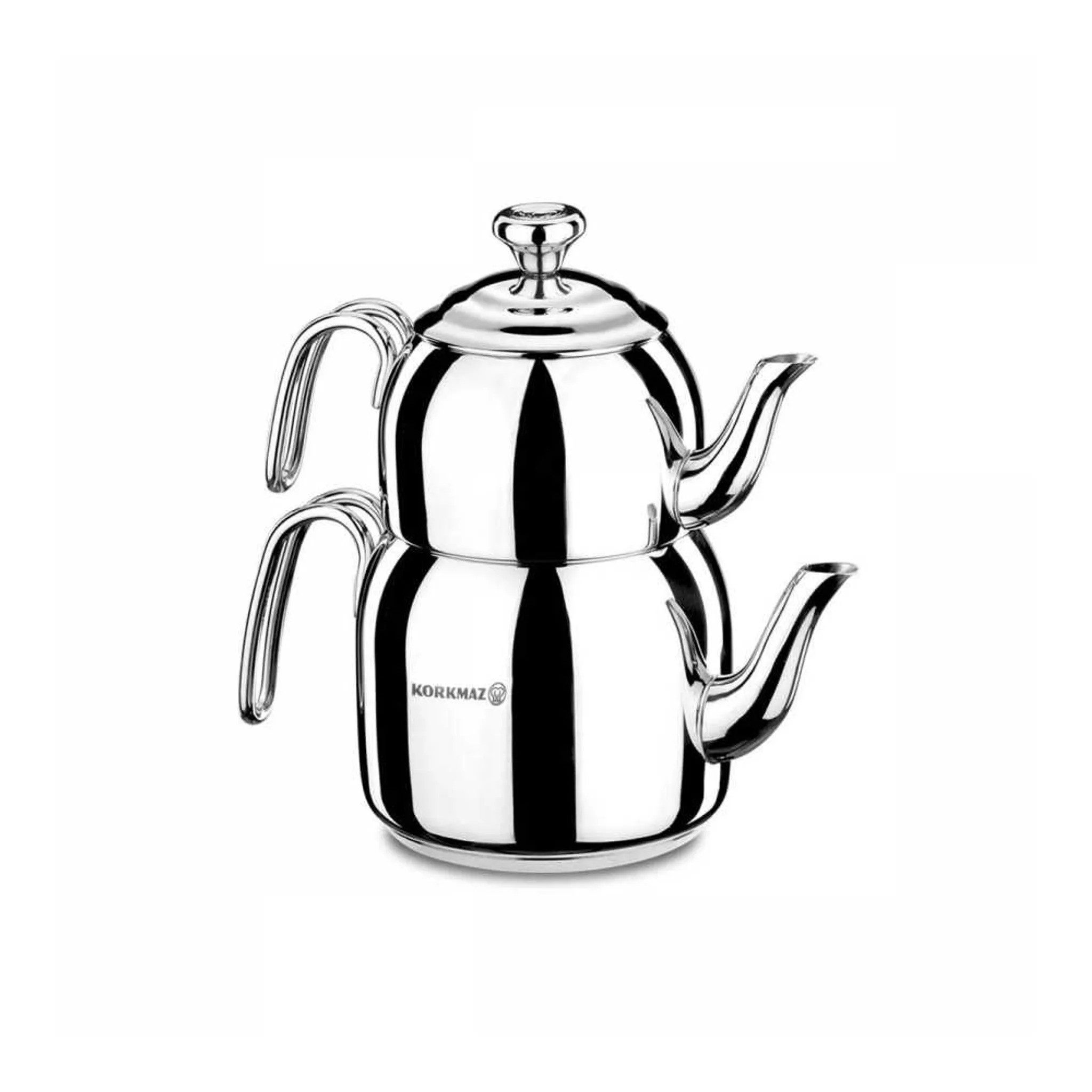 Entdecken Sie jetzt das Korkmaz Mega Teekanne Set A 058 - ein wahres Must-Have für alle Teeliebhaber! Mit einem Teekannenvolumen von 2 Litern und einem unteren Volumen von 3,5 Litern bietet dieses Set aus hochwertigem 18/10 Cr-Ni-Edelstahl nicht nur ausreichend Platz für Ihre Lieblingstees, sondern überzeugt auch mit seiner robusten Qualität. Die sorgfältig polierten Außenflächen bewahren stets ihren Glanz und verleihen der Teekanne eine edle Optik.