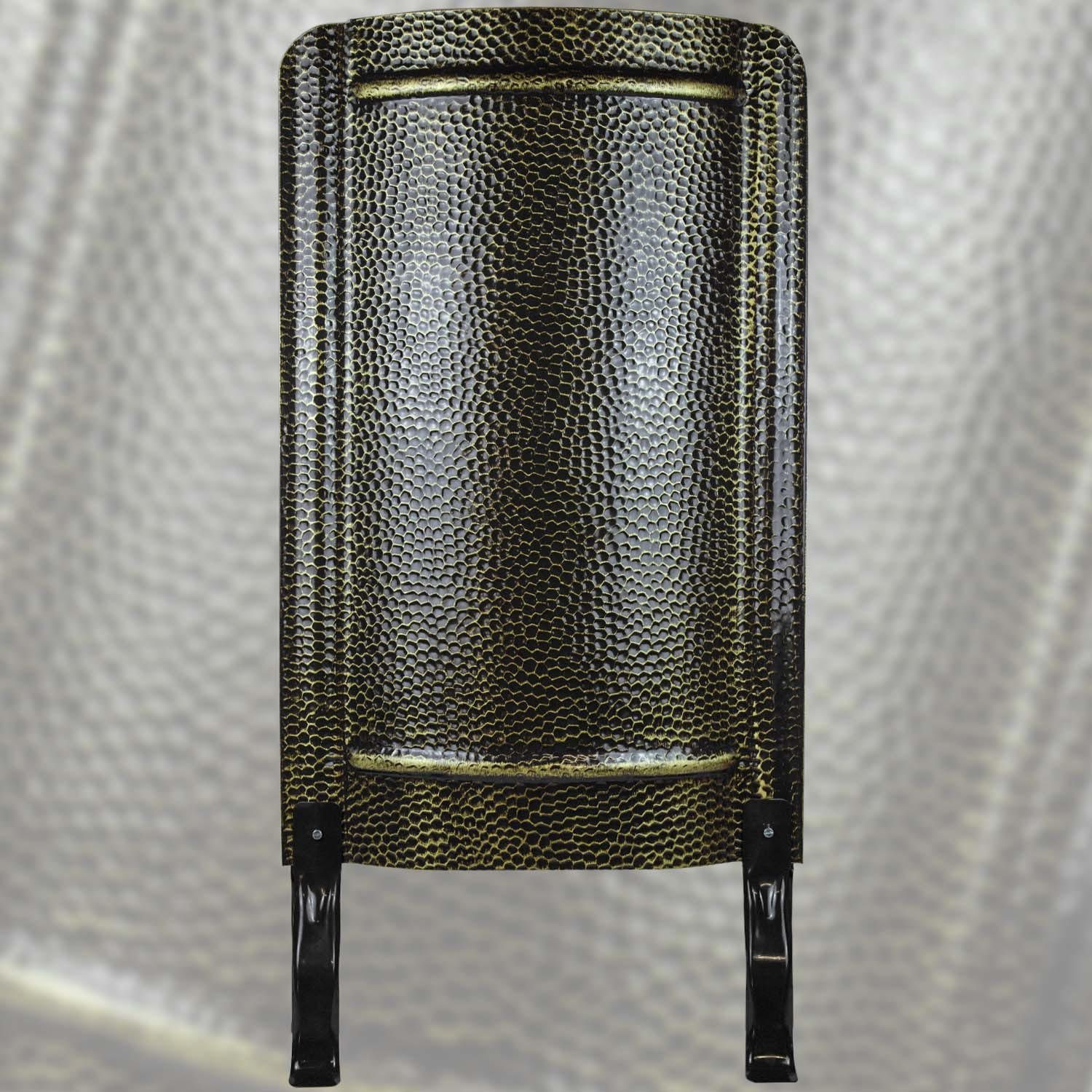 Hitzeschild Hergestellt in Deutschland. Dieses praktische Hitzeschild ist aus verzinktem Stahlblech gehämmert und von deutscher Handarbeit gefertigt. Dieses Ofenschild schützt Ihre Möbel bzw. Wand vor zu hoher Hitze des Ofens bzw. Kamins. Das Hitzeschild ist in 6 verschiedenen Вариантыn erhältlich: schwarz-silber | braun-gold | kuper-schwarz | weiß-gold | schwarz-gold | blank verzinkt ohne Lackierung. In diesem Angebot wird die Ausführung schwarz-gold gewischt angeboten. Gesamthöhe inkl. Füße: 91 cm Breite: 46 cm Materialstärke: 0,8 mm Stahlblech verzinkt gehämmert (keine Lackierung) Besonderheit: deutsche Handarbeit auf alten Maschinen gefertigt | Das Hitzeschild wird inkl. Füsse und Schrauben für die Selbstmontage geliefert.