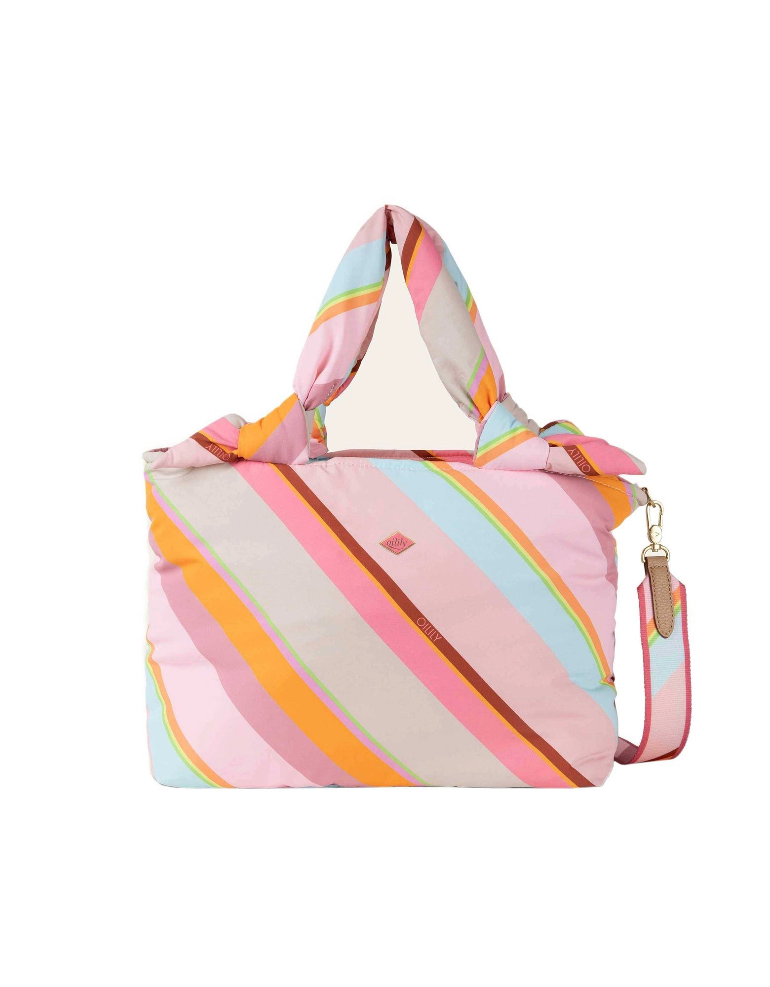 Stylische Handtasche von Oilily aus der Summer Stripes Kollektion, die Sie im Alltag begleitet. Die Holly Handbag wurde mit recyceltem Polyester gefüttert und hat einen "luftigen" Effekt, der für ein angenehmes Tragen sorgt