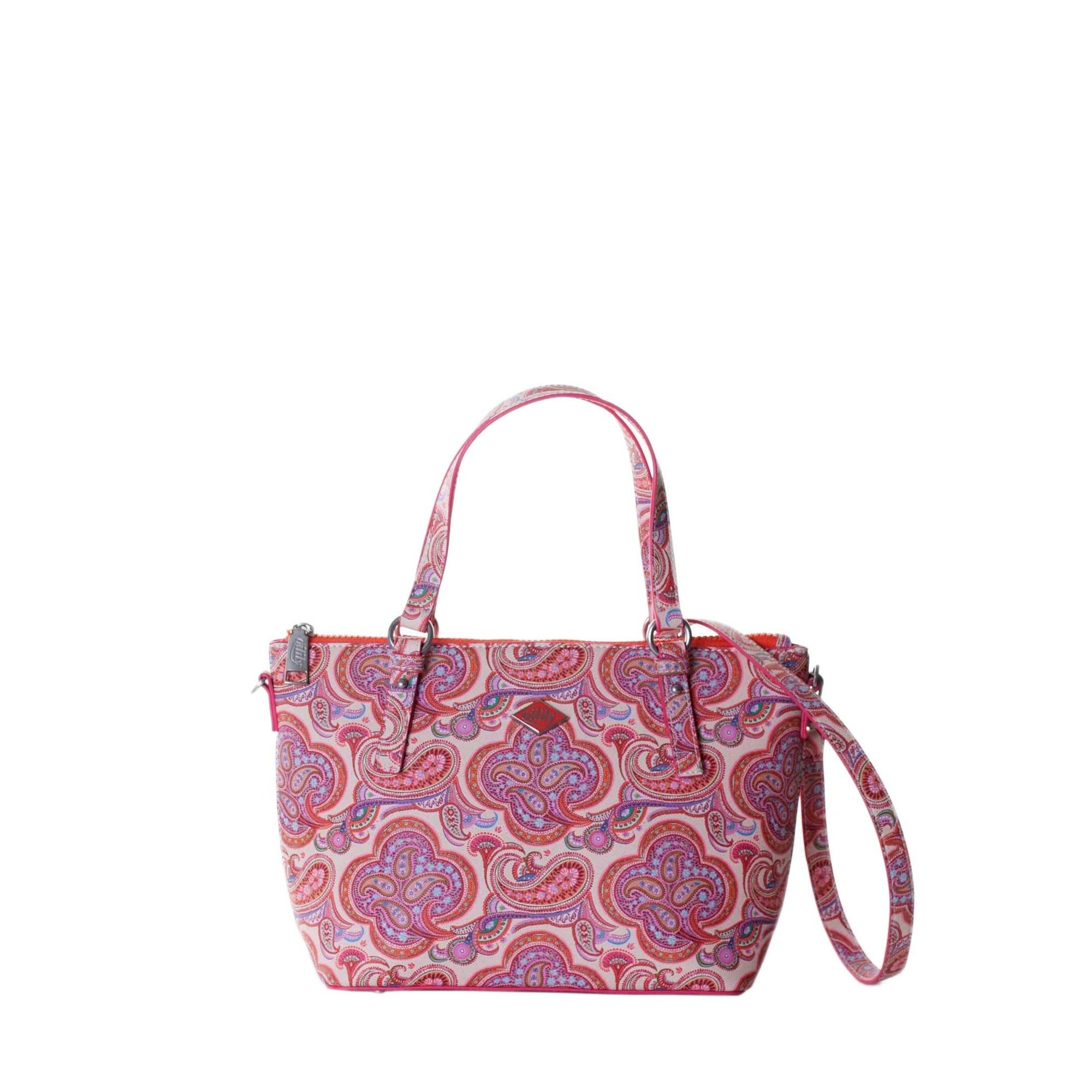 Stylische Handtasche von Oilily aus der Summer Paisley Kollektion. Die Oilily S Handbag Vanilla wurde aus robustem Kunstleder hergestellt und kommt vielseitig zum Einsatz; als Handtasche, Schultertasche oder als Umhängetasche. Die silberfarbene Hardware und Nylon-Reißverschlüsse in Metalloptik runden den perfekten Look ab.