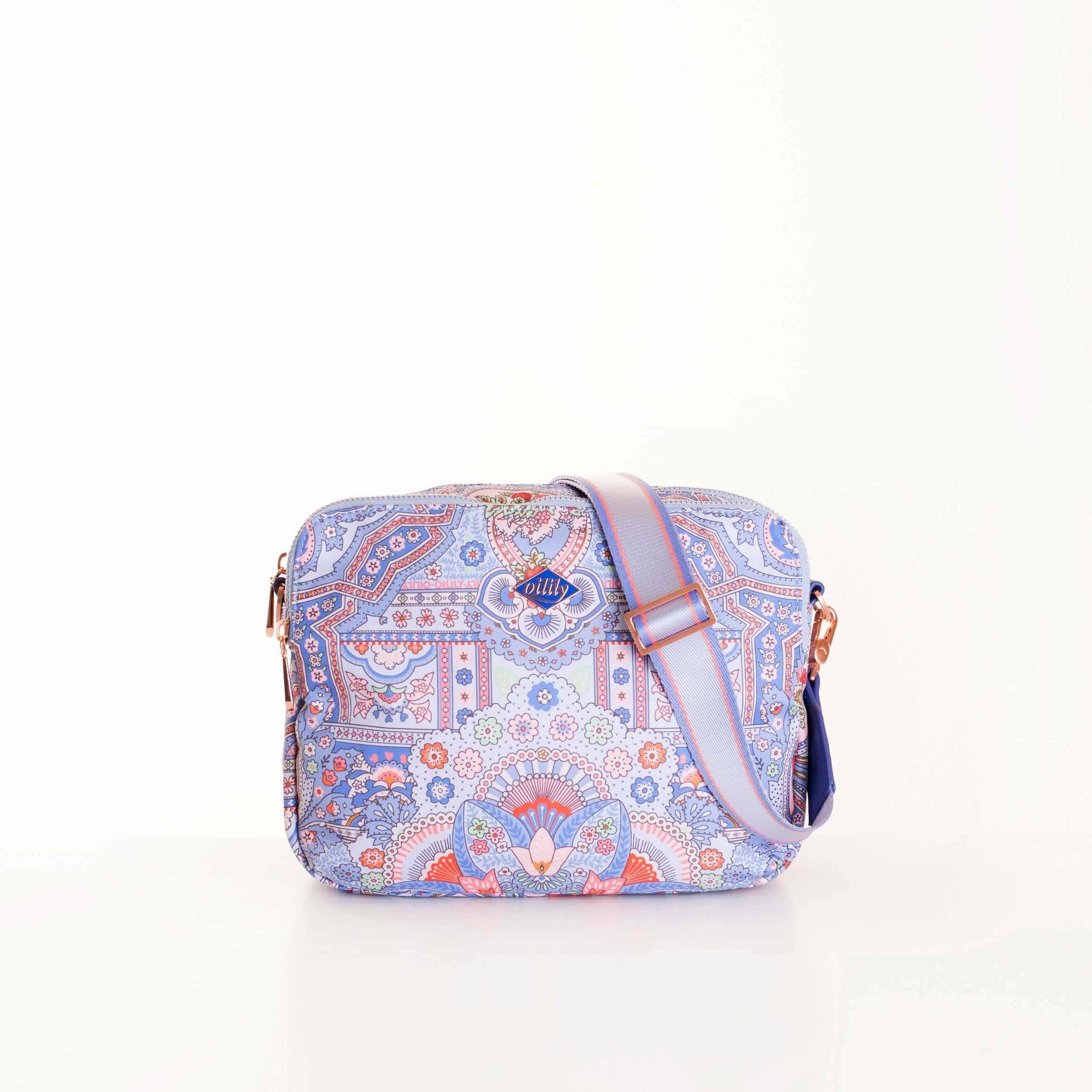 Stilvolle Umhängetasche von Oilily aus der Simply Ovation Kollektion in Blau. Die Oilily S Shoulder Bag Sky Blue ist praktisch, geräumig und leicht. Das Material ist strapazierfähig, Wasser und Schmutz abweisend. Die Roségold Hardware, Saffiano-Kunstlederbesätze und glänzende Reißverschlüsse runden den perfekten Look ab.