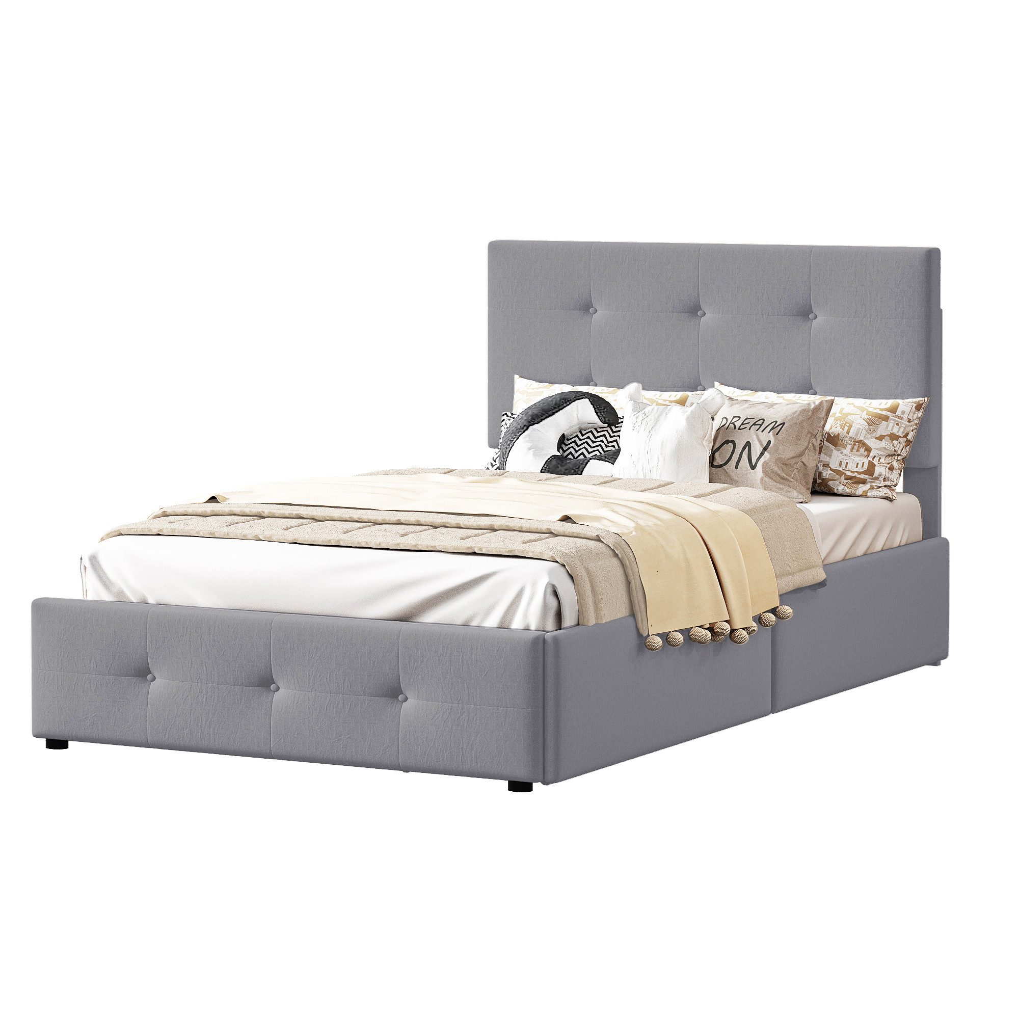 Der innere Stahlrahmen und die dichte Schaumstoffpolsterung garantieren Weichheit und Langlebigkeit. Dieses Bett ist für eine lange Nutzungsdauer konzipiert und bietet eine stabile und zuverlässige Schlafunterstützung.