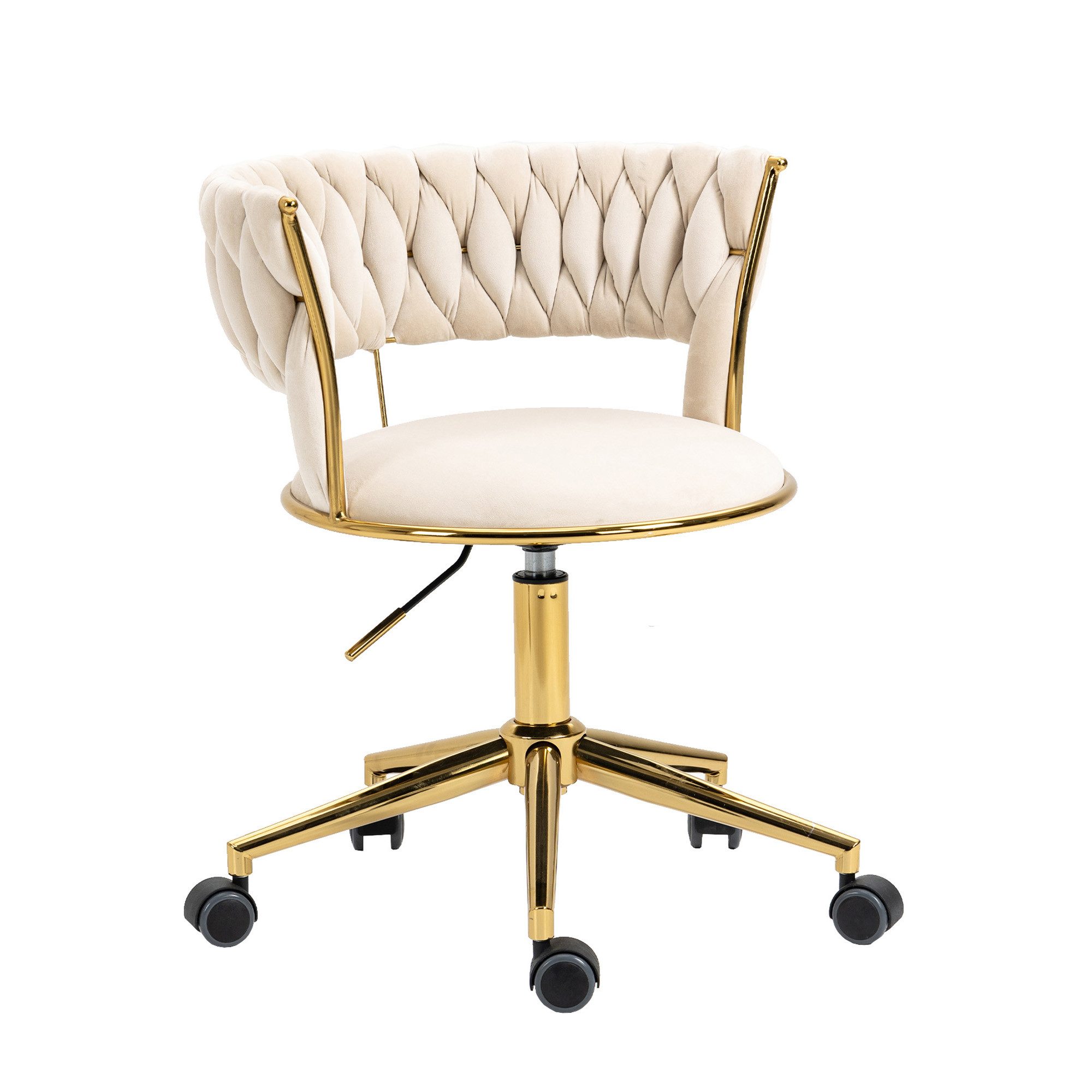 Dieser Sessel von hat ein klassisches Design mit einem raffinierten und eleganten Look, der Ihrem Arbeitszimmer oder Büro ein modernes Flair verleiht und unglaublichen Komfort und ein warmes Ambiente in Ihr Zuhause bringt. Der Bürostuhl ist ideal für jeden Freizeit- oder professionellen Arbeitsbereich. Es bietet komfortable Unterstützung in einem komfortablen und praktischen Design. Gut verarbeitet mit gebogener Rückenlehne, verstellbarem Hubsitz und Fünf-Sterne-Basis mit Rollen für einfache Mobilität. Ob als Bürostuhl, Ankleidestuhl oder Freizeitstuhl, er ist eine gute Wahl.