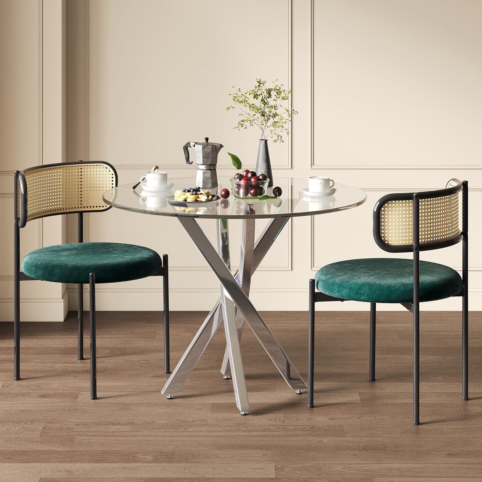 Material | Gehärtetes Glas, Metall,Samt, Rattan |