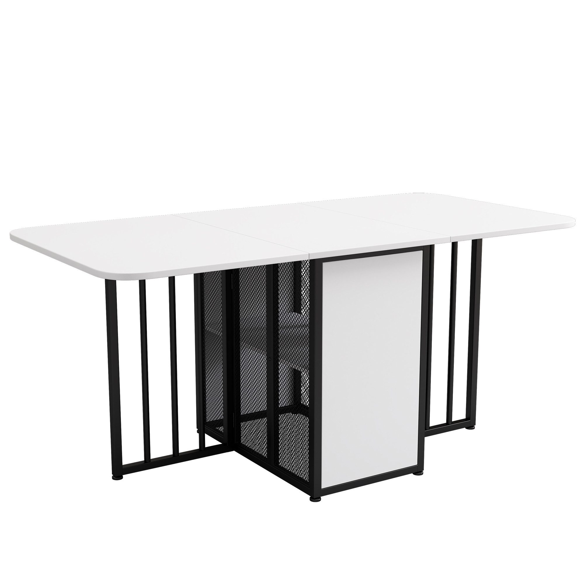 Dank der hochwertigen Spanplatte bietet dieser robuste Klapptisch eine hervorragende Stabilität und Langlebigkeit. Das platzsparende Design ermöglicht es, den Tisch bei Bedarf zu einem Schrank zusammenzuklappen, der zusätzlichen Stauraum für Küchenutensilien, Getränke und andere Gegenstände bietet. Eine integrierte Schublade bietet zusätzlichen Platz für Snacks und andere tägliche Utensilien.