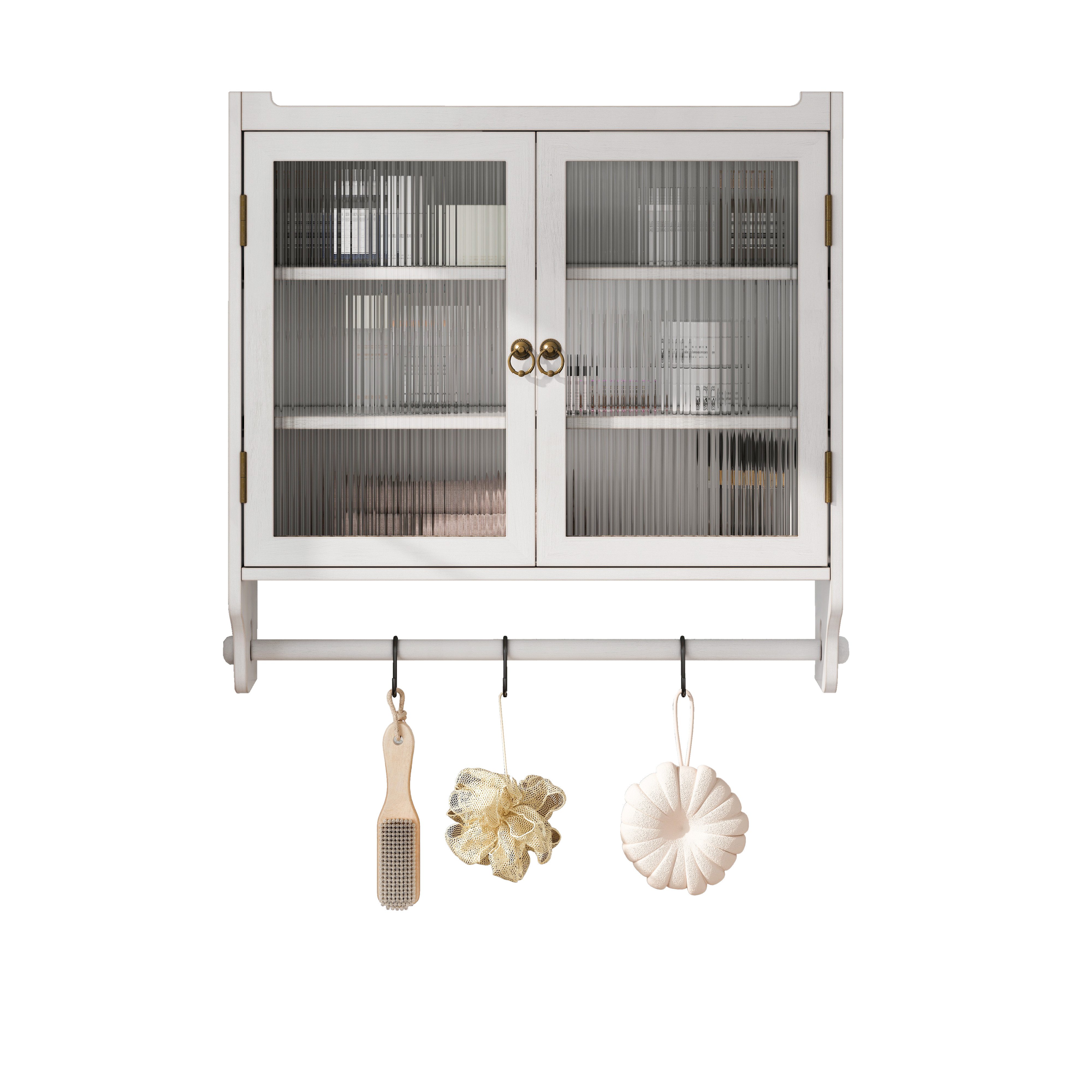 Dieses Wandregal im Vintage-Stil besticht durch seine schlichte Eleganz und die harmonische Kombination aus natürlichem Holz und modernen Glaselementen. Die Doppelglastüren sorgen für einen besonders stilvollen Look, während das Design insgesamt eine zeitlose Ästhetik in Ihre Räume bringt. Mit seiner Mischung aus klassischem und modernem Design fügt sich das Regal perfekt in Badezimmer, Küche oder Esszimmer ein.