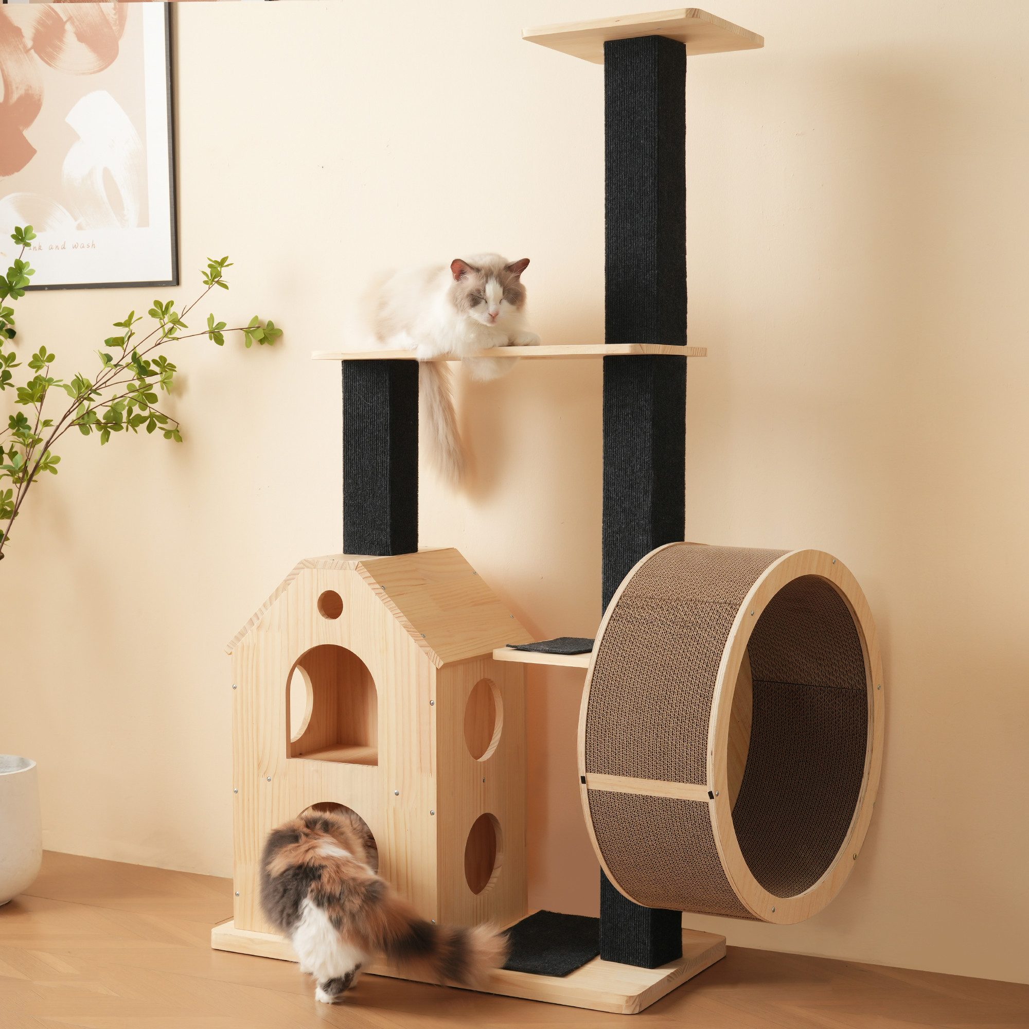 Pflegeleicht: Hergestellt aus Massivholz statt Plüsch, bietet dieser Kratzbaum zeitlose Qualität und ist einfach zu reinigen – ideal für anspruchsvolle Katzen und stilbewusste Besitzer.