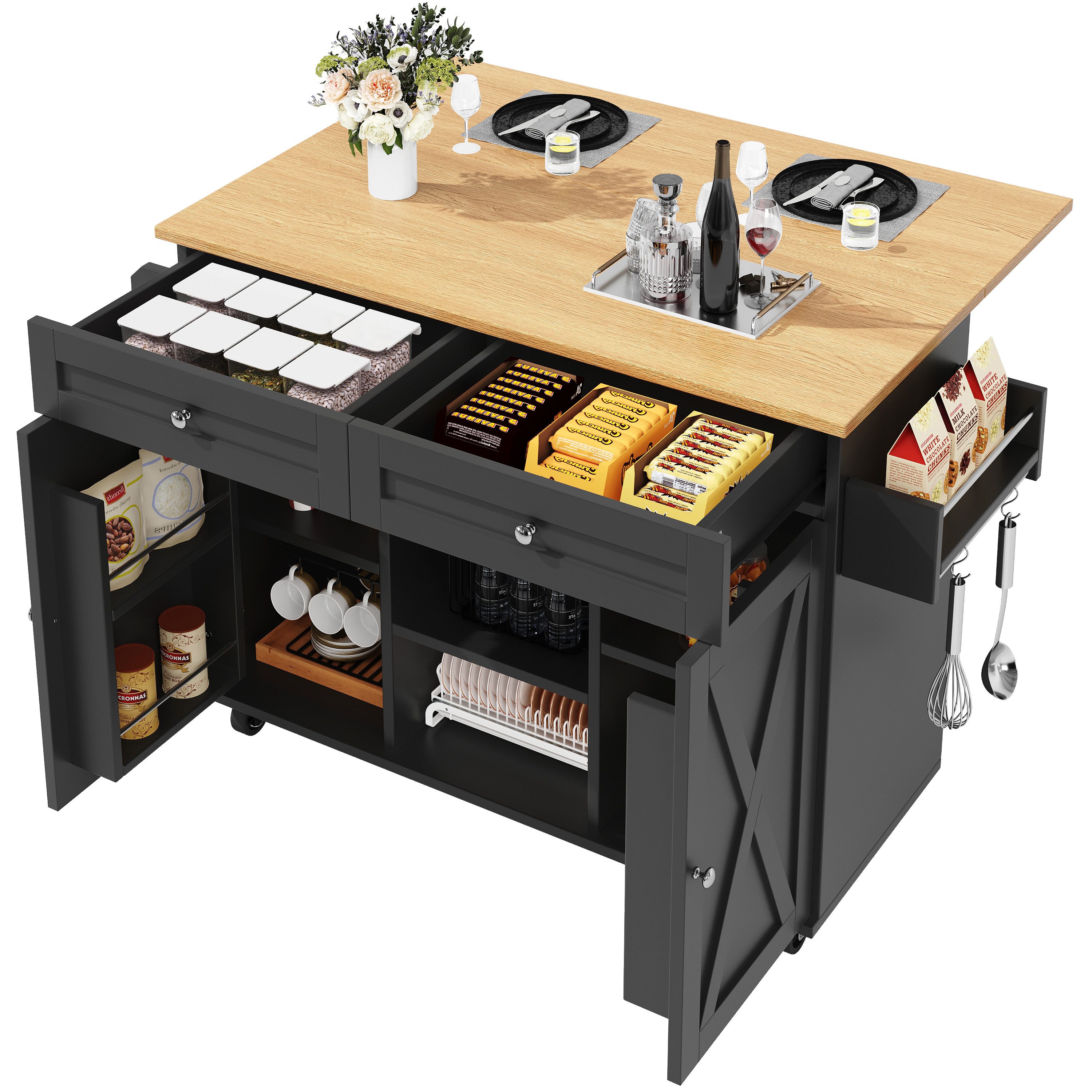 Set-Typ | Moderne Multifunktionale Kücheninsel mit Snackregalen, verstellbaren Regalen und Holzmaserung. |