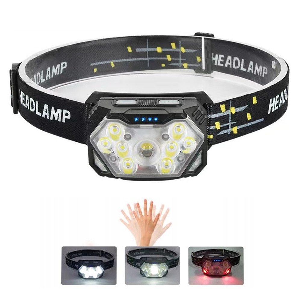 OKWISH LED-Stirnlampe mit 9 LEDs – Ultrahell, Wiederaufladbar, mit Bewegungssensor & IPX4-Schutz