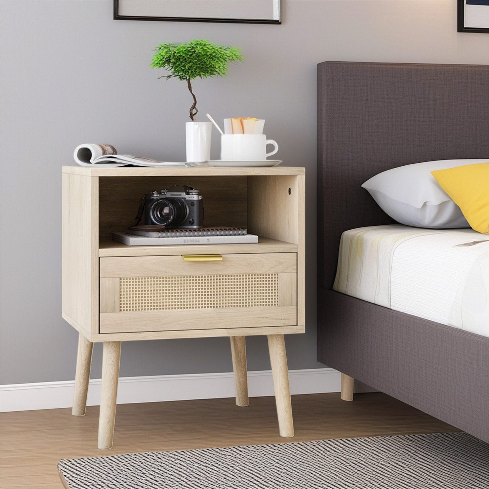 Der Nachttisch besteht aus hochwertigem MDF-Holz und stabilen Massivholzbeinen. Diese Kombination sorgt für eine hohe Belastbarkeit und lange Lebensdauer. Zusätzlich sind an den Beinen Anti-Rutsch-Gummipads angebracht, die Kratzer auf dem Boden verhindern und die Geräuschentwicklung reduzieren.