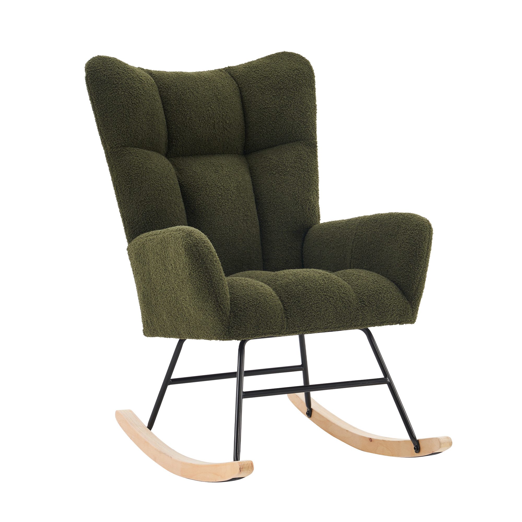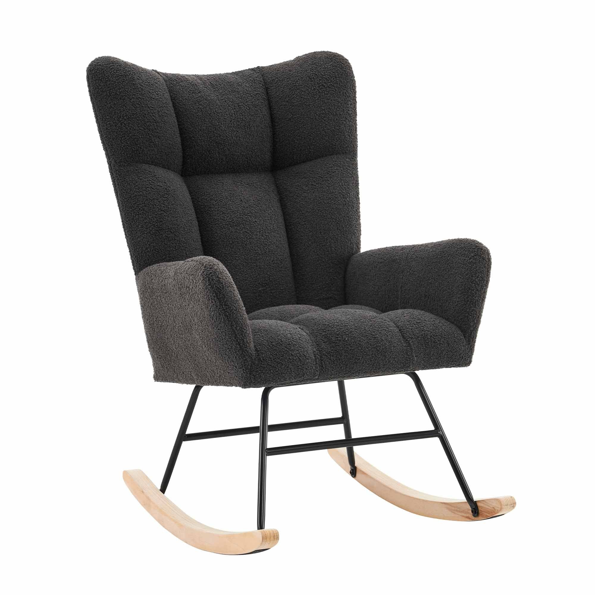 Dieser moderne Schaukelstuhl mit hoher Rückenlehne und Armlehnen sorgt für eine komfortable Schwingfunktion, die Ihnen hilft, sich nach einem langen Tag zu entspannen. Ideal zum Schaukeln, während Sie ein Buch lesen oder einfach die Seele baumeln lassen. Der sanfte Bewegungseffekt fördert die Entspannung und macht ihn zur perfekten Wahl für Ihr Wohnzimmer oder Schlafzimmer.