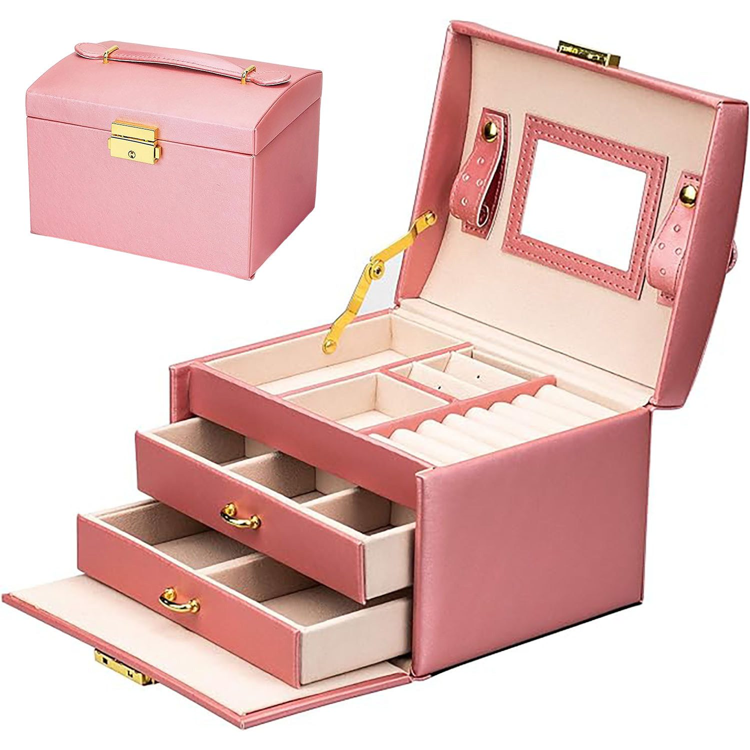 Schmuckkoffer für Zuhause: Der Schmuckkoffer mit drei Ebenen dient perfekt als Aufbewahrungsbox des Schmucks für Zuhause.