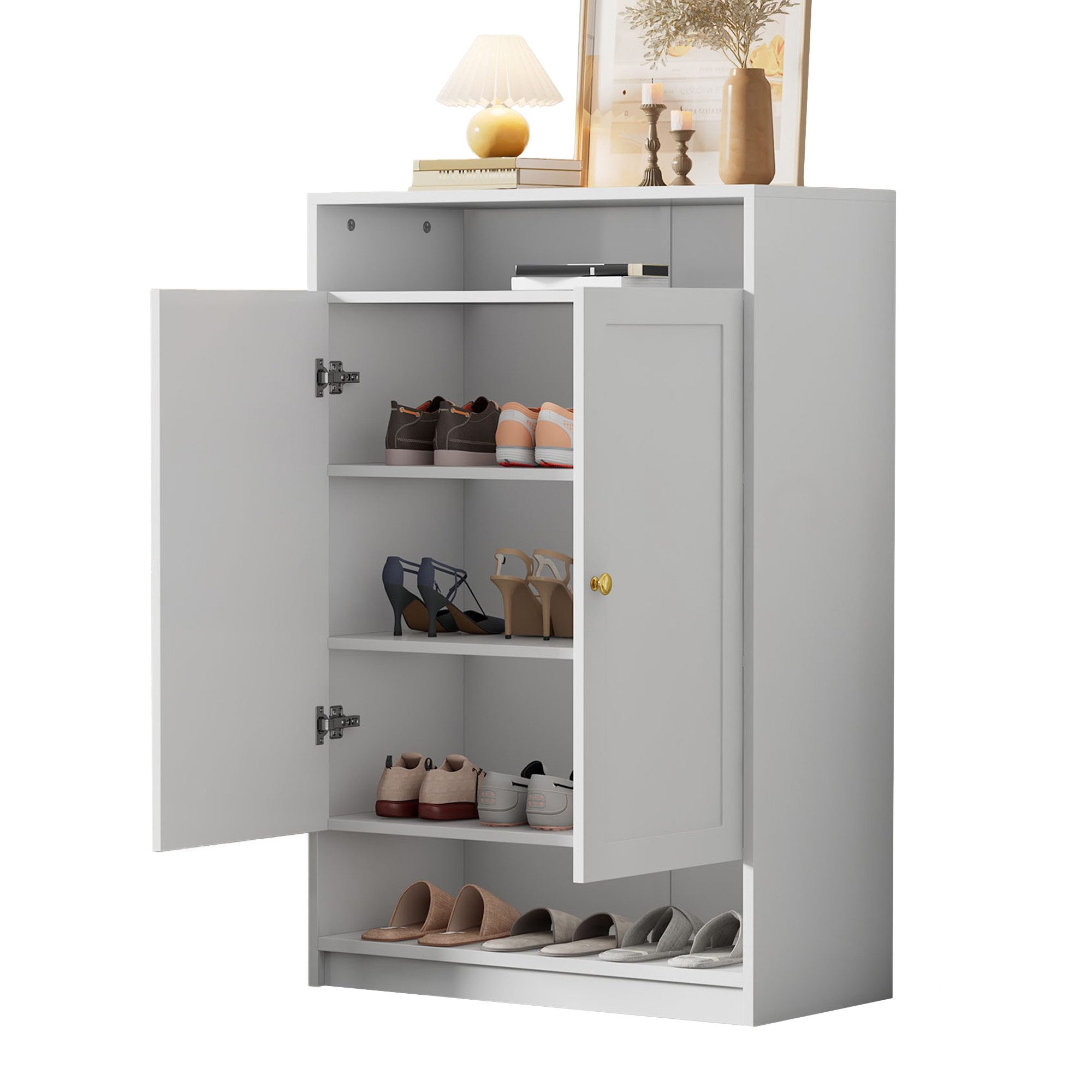 Elegantes Design:Die klare, weiße Oberfläche und die goldenen Griffe bieten einen modernen Look, der mit jeder Einrichtung harmoniert. Der Schuhschrank ist somit nicht nur funktional, sondern auch ein stilvolles Möbelstück.