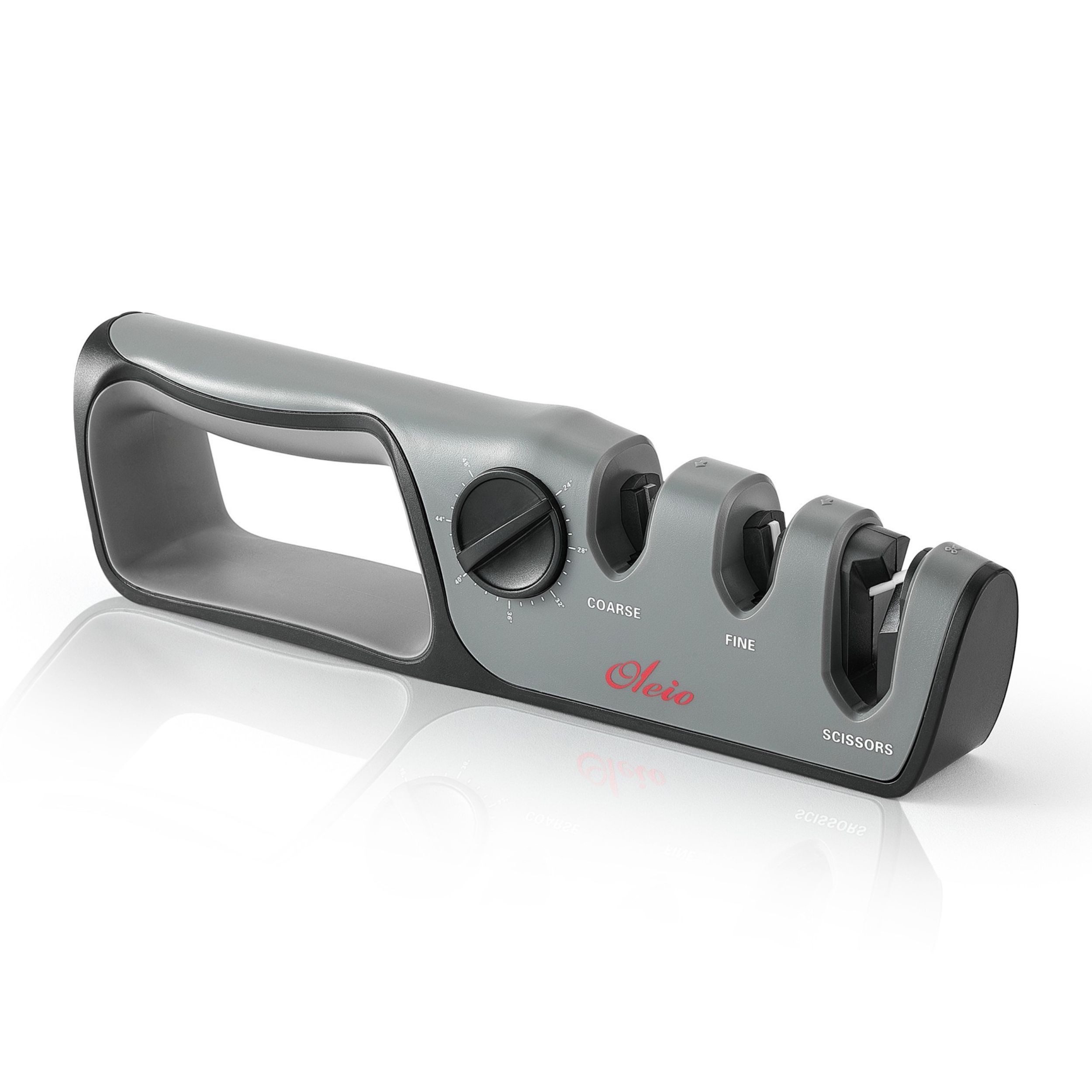 Der Oleio Profi Messerschärfer sorgt dafür, dass Ihre Messer jederzeit zuverlässig einsatzbereit sind. Mit einem praktischen 2-Stufen-System und einem verstellbaren Winkel bringt er stumpfe Klingen mühelos wieder auf Schärfe. Einfach in der Handhabung, kompakt im Design und stark in der Leistung – ein Küchenhelfer, der überzeugt.