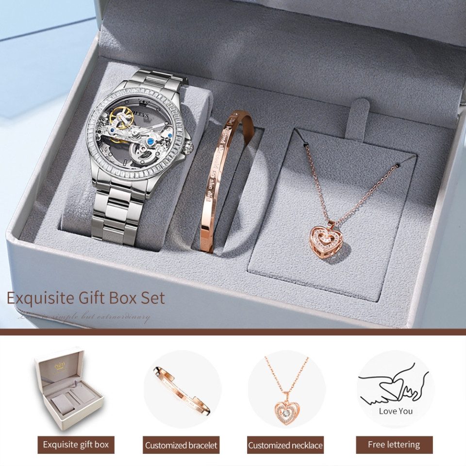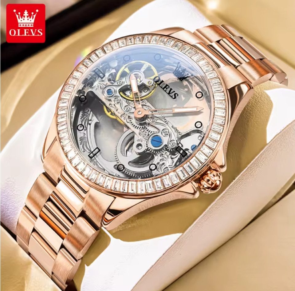 Besondere Merkmale | Skelett Zifferblatt mit offener Unruhe & Diamantenlünette |