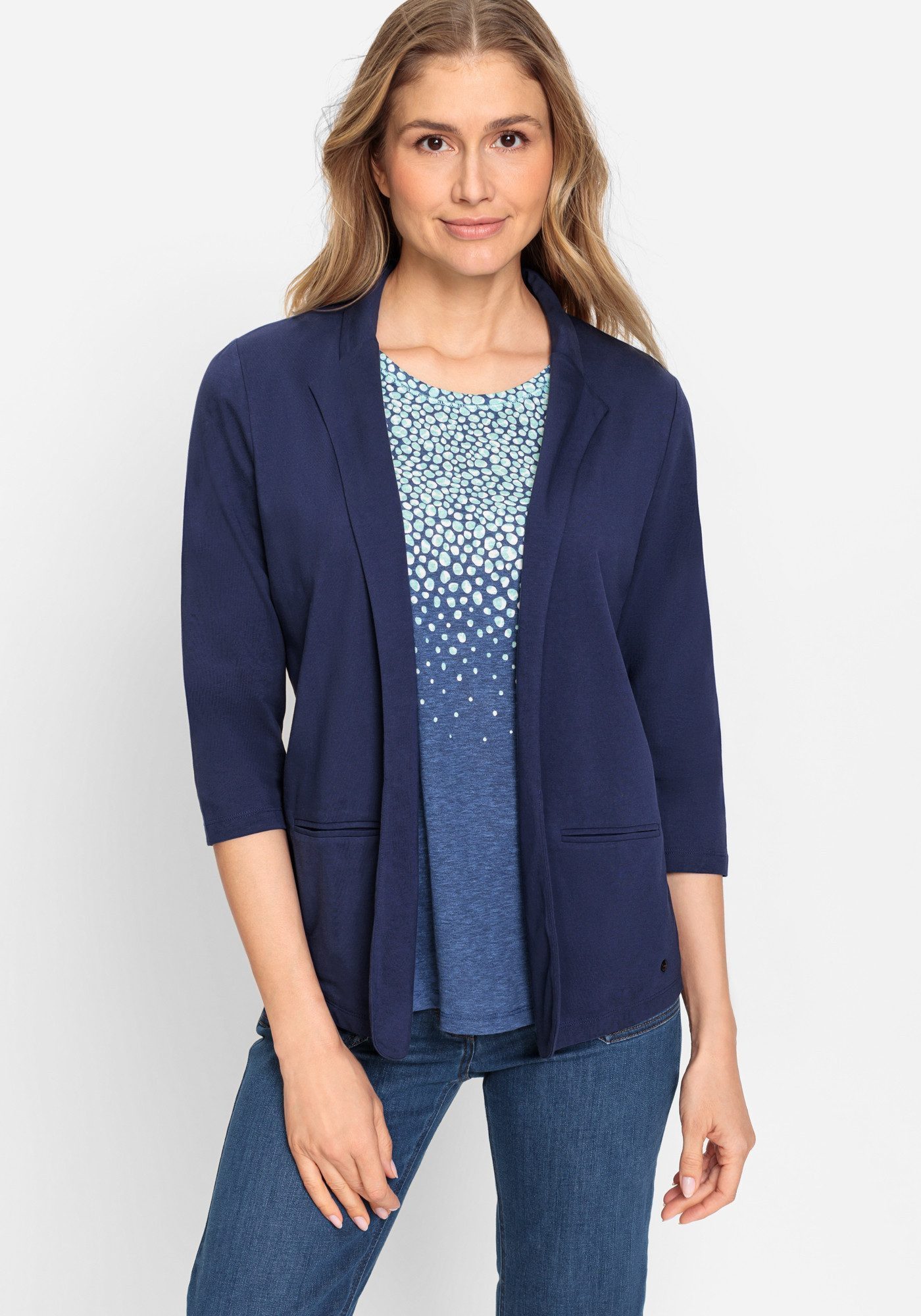 Perfekt zum Überziehen ist dieser sportive Jersey Blazer. Gefertigt aus leichtem Jersey lässt er sich super kombinieren - im Kontrast zur lässigen Optik stehen die Paspeltaschen, die Ärmel in 3/4 Длина und das Revers.