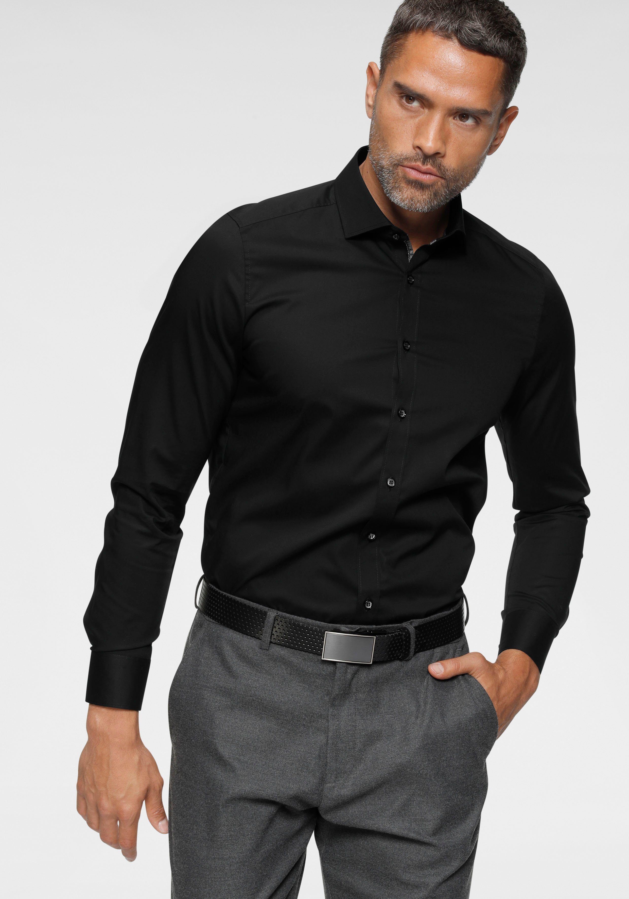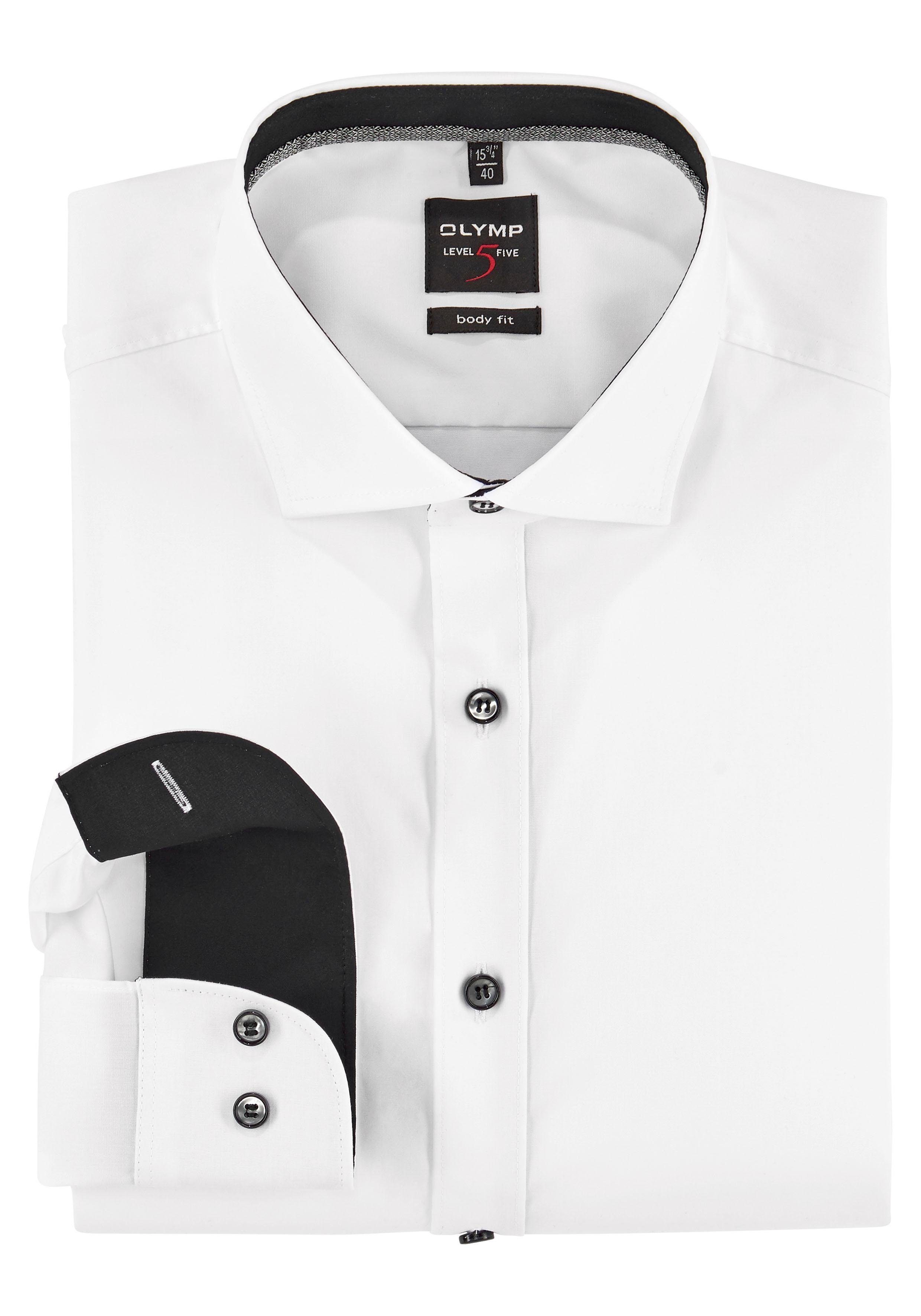 Mit dem Businesshemd »Level Five body fit« von OLYMP lassen sich schnell neue Outfits zusammenstellen. Der Kentkragen ist mit seinen mittellangen, spitzen Kragenenden ein echter Klassiker, der sich für breite Krawattenknoten eignet. Die langen Ärmel enden in einer geknöpften Manschette. Dieses Hemd ist schmal geschnitten, sodass dein Oberkörper dezent in Szene gesetzt wird.