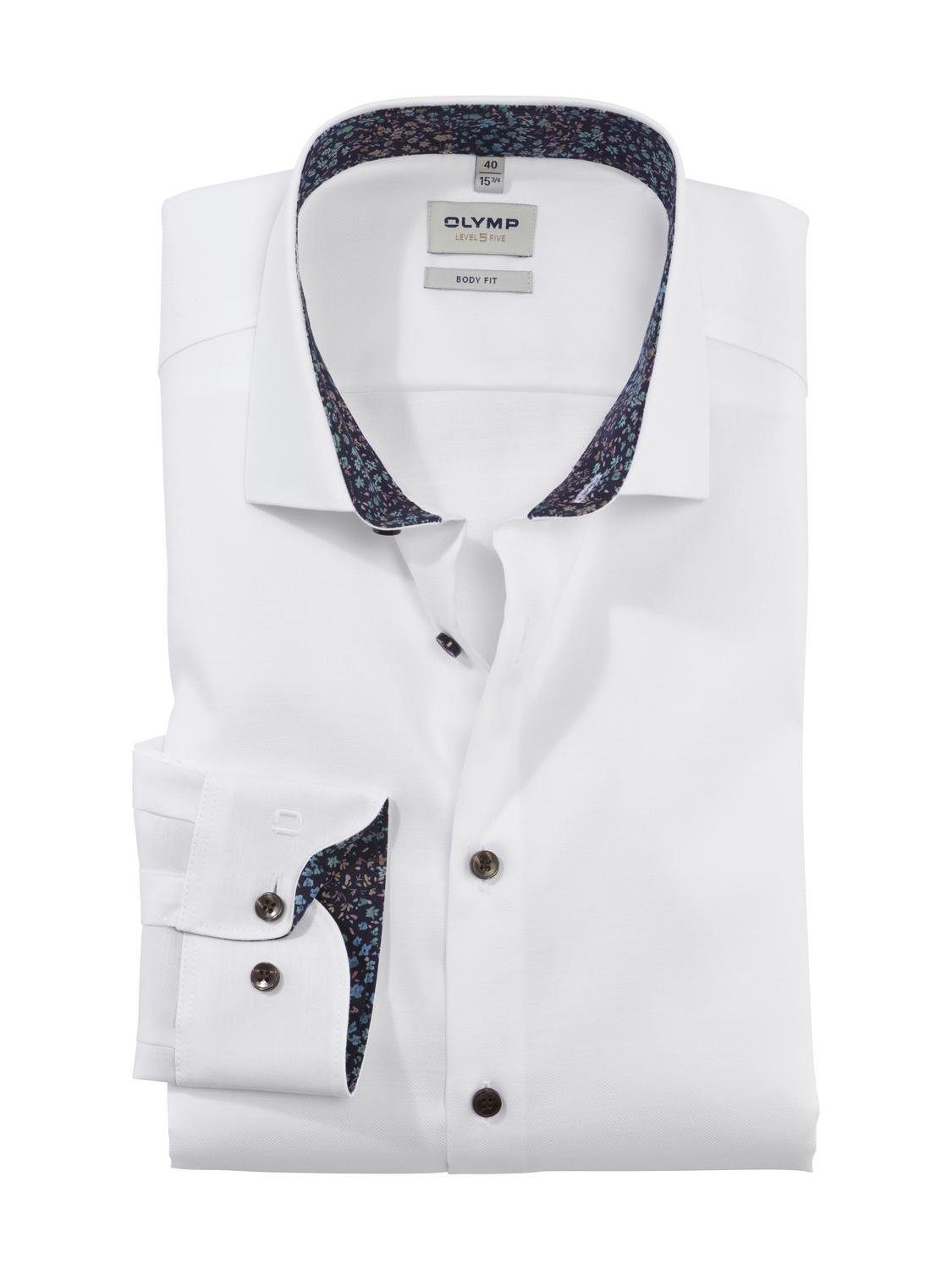 Mit dem Businesshemd »Level Five body fit« von OLYMP bist du stilsicher unterwegs und gibst deinem Look den letzten Schliff. Denn das Hemd kommt mit dem Blumen-Muster nicht nur gut an, sondern bringt auch eine romantische und verspielte Note in dein Outfit. Der Kentkragen hat eine etwas breitere Kragenstellung, bei der die spitz zulaufenden Ecken einen rechten Winkel bilden.