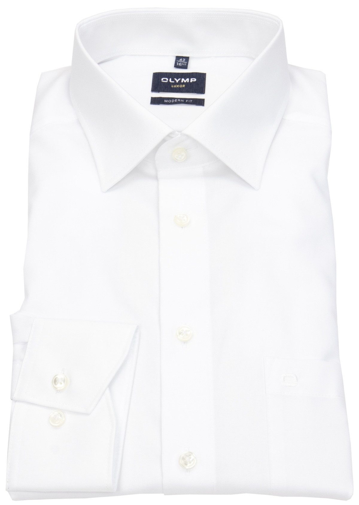 Mit dem Businesshemd »Luxor modern fit« von OLYMP lassen sich schnell neue Styles kombinieren. Der Kentkragen hat eine etwas breitere Kragenstellung, bei der die spitz zulaufenden Ecken einen rechten Winkel bilden.