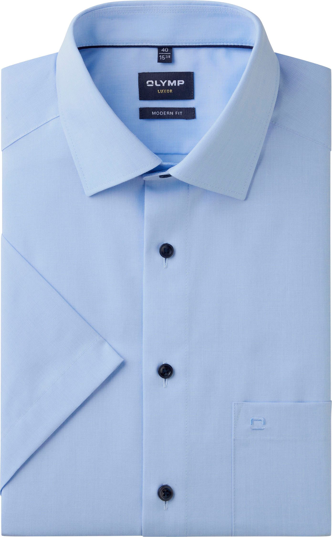Das Kurzarmhemd von OLYMP ist sowohl bei schicken Anlässen als auch im Büro eine gute Option. Die Logostickerei macht das Hemd individuell und peppig. Der Kentkragen ist mit seinen mittellangen, spitzen Kragenenden ein echter Klassiker, der sich für breite Krawattenknoten eignet. Dieses Hemd ist hüftlang sowie schmal geschnitten, sodass dein Oberkörper dezent in Szene gesetzt wird.