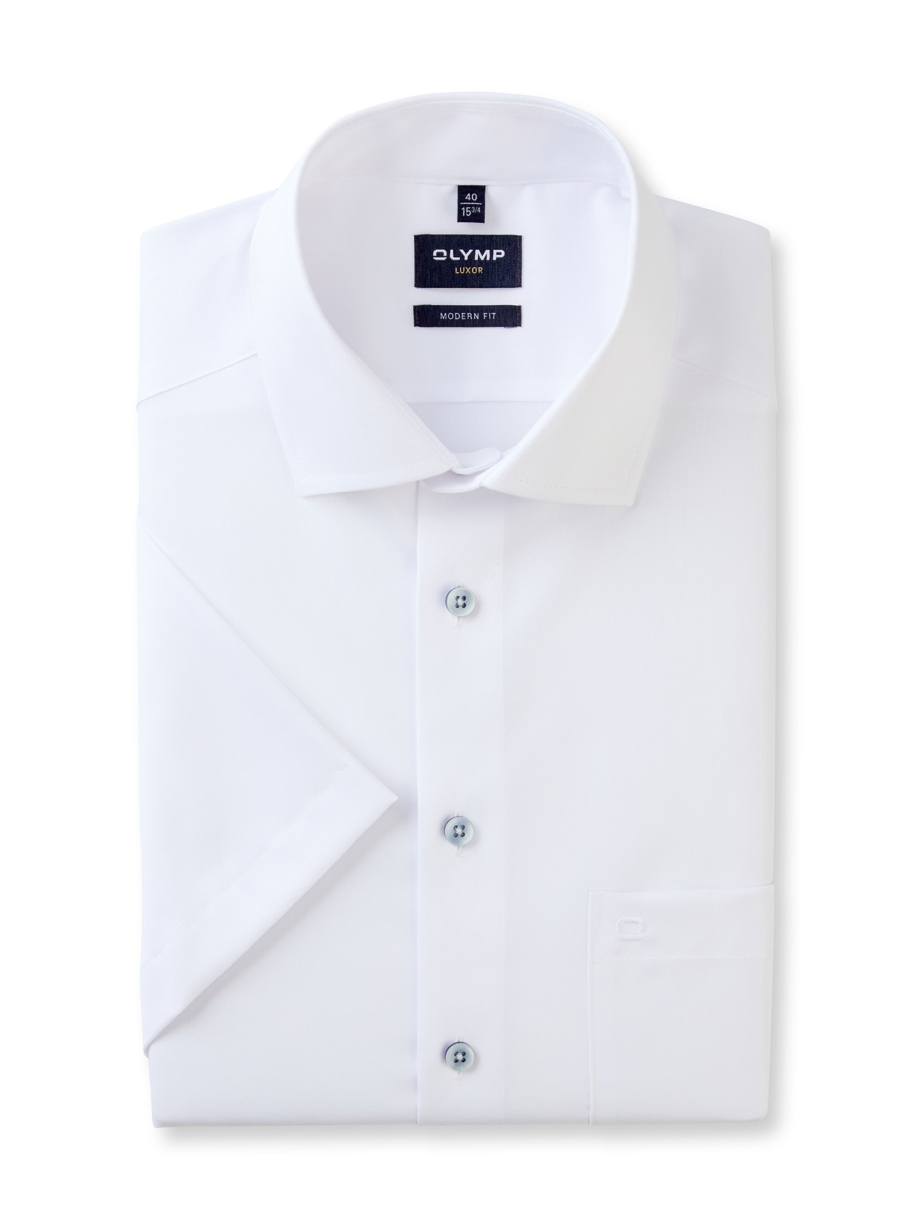 Das Kurzarmhemd »Luxor modern fit« von OLYMP ist bei festlichen Veranstaltungen oder im Büro eine stilsichere Wahl. Der Kentkragen ist mit seinen mittellangen, spitzen Kragenenden ein echter Klassiker, der sich für breite Krawattenknoten eignet. Mit den Knöpfen hast du eine größere Öffnung, bei der du dir beim An- und Ausziehen keine Gedanken über deine gemachten Haare machen musst.