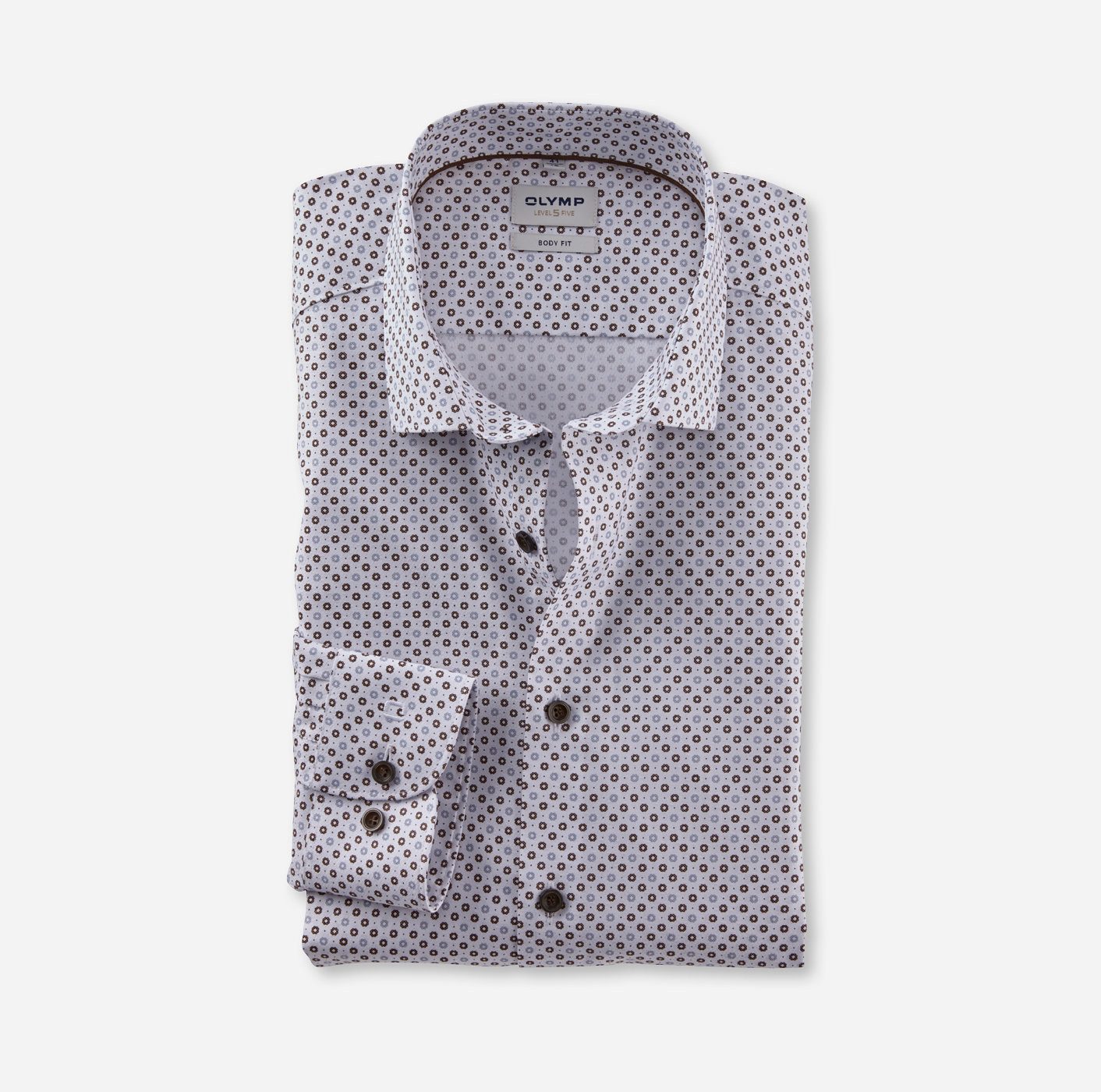 Verleihe Deinem Business-Look das gewisse Etwas mit einem eleganten Business-Hemd, das durch seinen raffinierten Allover-Print überzeugt. Das Body-Fit Hemd mit Muster bietet Dir dank seiner hochwertigen Materialzusammensetzung aus 97% Baumwolle und 3% Elastolefin nicht nur einen optimalen Tragekomfort, sondern auch eine hervorragende Passform. Die feinen Punkte auf dem Gewebe verleihen dem Hemd eine stilvolle Note, die perfekt zu jedem formellen Anlass passt. Egal, ob im Büro oder bei wichtigen Meetings, mit diesem Hemd ziehst Du garantiert alle Blicke auf Dich.Langärmelige Eleganz trifft auf modische Vielseitigkeit. Der Kentkragen dieses Business-Hemdes setzt einen klassischen Akzent, während die durchgehende Knopfleiste für einen mühelosen und stets gepflegten Look sorgt. Der Allover-Print hebt sich durch seine subtile und dennoch markante Musterung ab, die Deinem Outfit einen modernen Touch verleiht. Die langärmelige Ausführung ist ideal für kühlere Tage und bietet Dir gleichzeitig die Möglichkeit, den Stil durch Hochkrempeln der Ärmel zu variieren. Ein Must-have für jeden stilbewussten Mann.Für den anspruchsvollen Business-Alltag ist ein Hemd gefragt, das nicht nur gut aussieht, sondern auch funktional ist. Die spezielle Mischung aus Baumwolle und Elastolefin sorgt dafür, dass das Hemd formbeständig bleibt, auch nach einem langen Arbeitstag. Durch die atmungsaktive Baumwolle wird Dir ein angenehmes Hautgefühl garantiert, während der Elastolefin-Anteil für die nötige Flexibilität sorgt. So bleibst Du den ganzen Tag über komfortabel und stilvoll. Ein Hemd, das Dich durch seine Qualität und seinen Tragekomfort überzeugt.Setze ein modisches Statement bei jedem Business-Termin. Das Body-Fit Hemd mit seinem eleganten Allover-Punkte-Muster ist die ideale Wahl für Herren, die Wert auf Stil und Komfort legen. Mit seiner schlichten Eleganz passt es sich mühelos verschiedenen Anlässen an, sei es ein formelles Meeting oder ein entspanntes Abendessen. Der Kentkragen rundet den Look ab und bietet Dir die Möglichkeit, mit oder ohne Krawatte zu glänzen. Ein Kleidungsstück, das Deiner Garderobe zeitlose Klasse verleiht und Dir Selbstbewusstsein in jeder Situation schenkt. Elegantes Business-Hemd mit raffinierter Allover-Punkte-Musterung Klassischer Kentkragen für einen stilvollen Look Vielseitig kombinierbar für verschiedene Business-Anlässe Langärmelige Ausführung für variable Stiloptionen