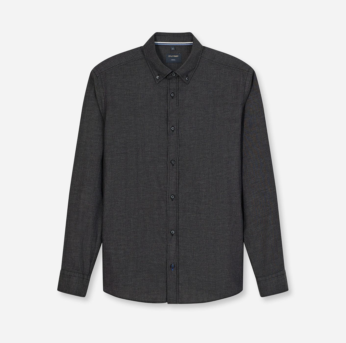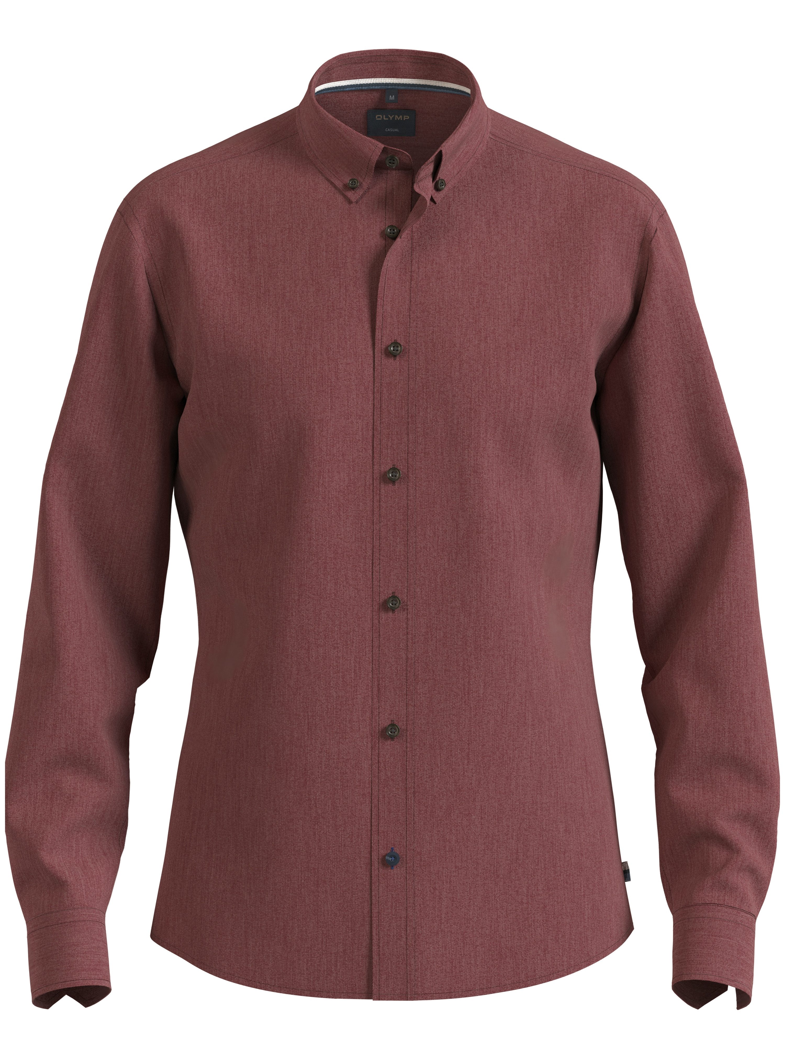 Mit dem Langarmhemd von OLYMP stellst du im Handumdrehen ein neues Outfit zusammen. Der Button-down-Kragen kommt ohne Kragenstäbchen und gestärkte Krageneinlage aus, denn kleine Knöpfe fixieren die Kragenspitzen und sorgen für guten Halt bei jeder Bewegung. Die langen Ärmel enden in einer Manschette. Dieses Hemd ist normal sowie basic geschnitten, sodass dein Oberkörper dezent in Szene gesetzt wird.