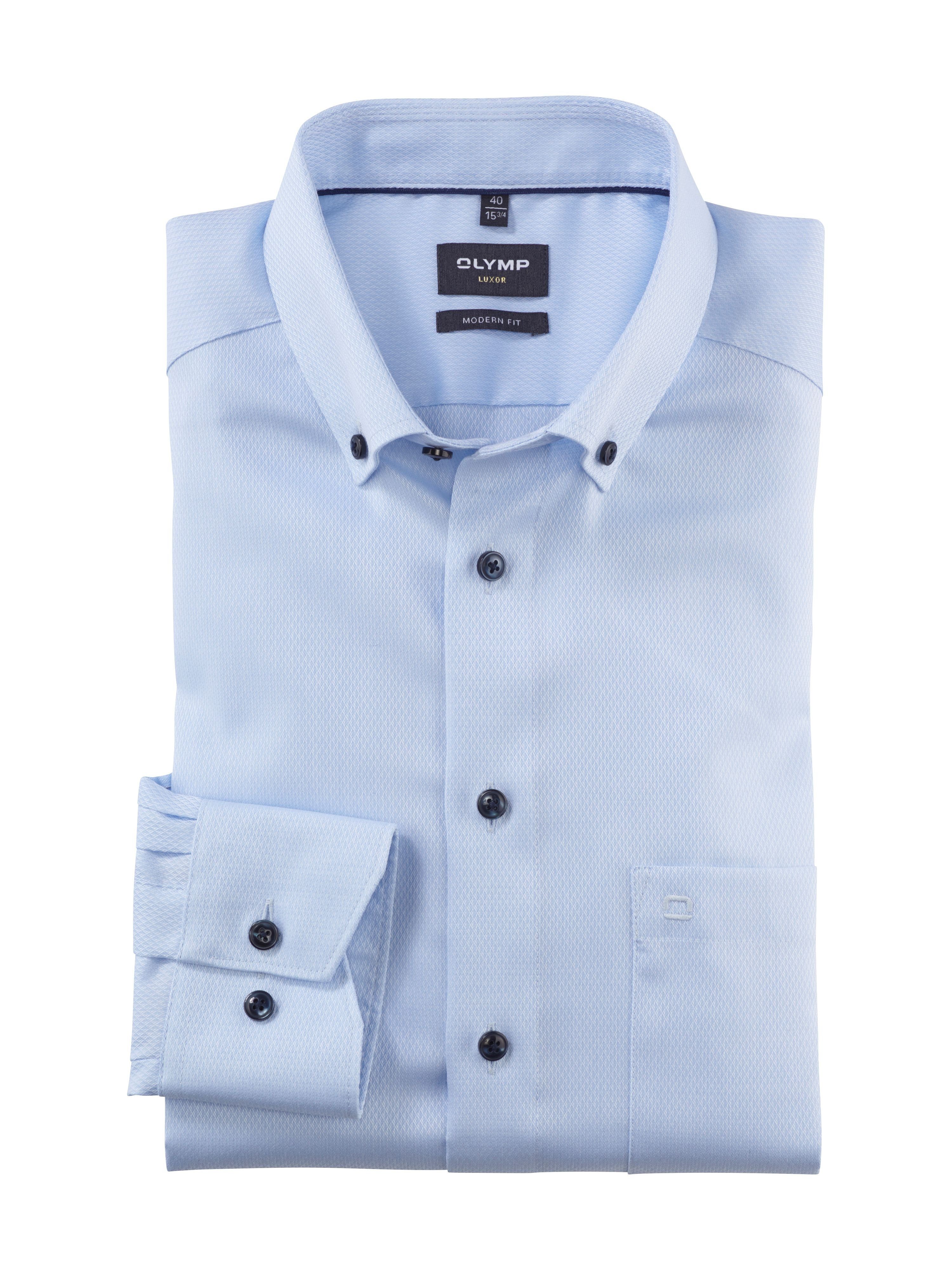 Das Hemd von Olymp besitzt ein schlichtes, aber dennoch alles andere als langweiliges Muster, welches stets eine ausgezeichnete Wahl ist. Der Kragen ist als Button Down angelegt, welcher auch nach längerem Tragen noch optimal sitzt und dank des Modern Fit Schnitts bietet das Kleidungsstück eine angenehme und bewegungsfreundliche Passform, die es besonders alltagstauglich macht. Dank des Baumwoll-Anteils von 100 % ist es ausgesprochen hautfreundlich und komfortabel.