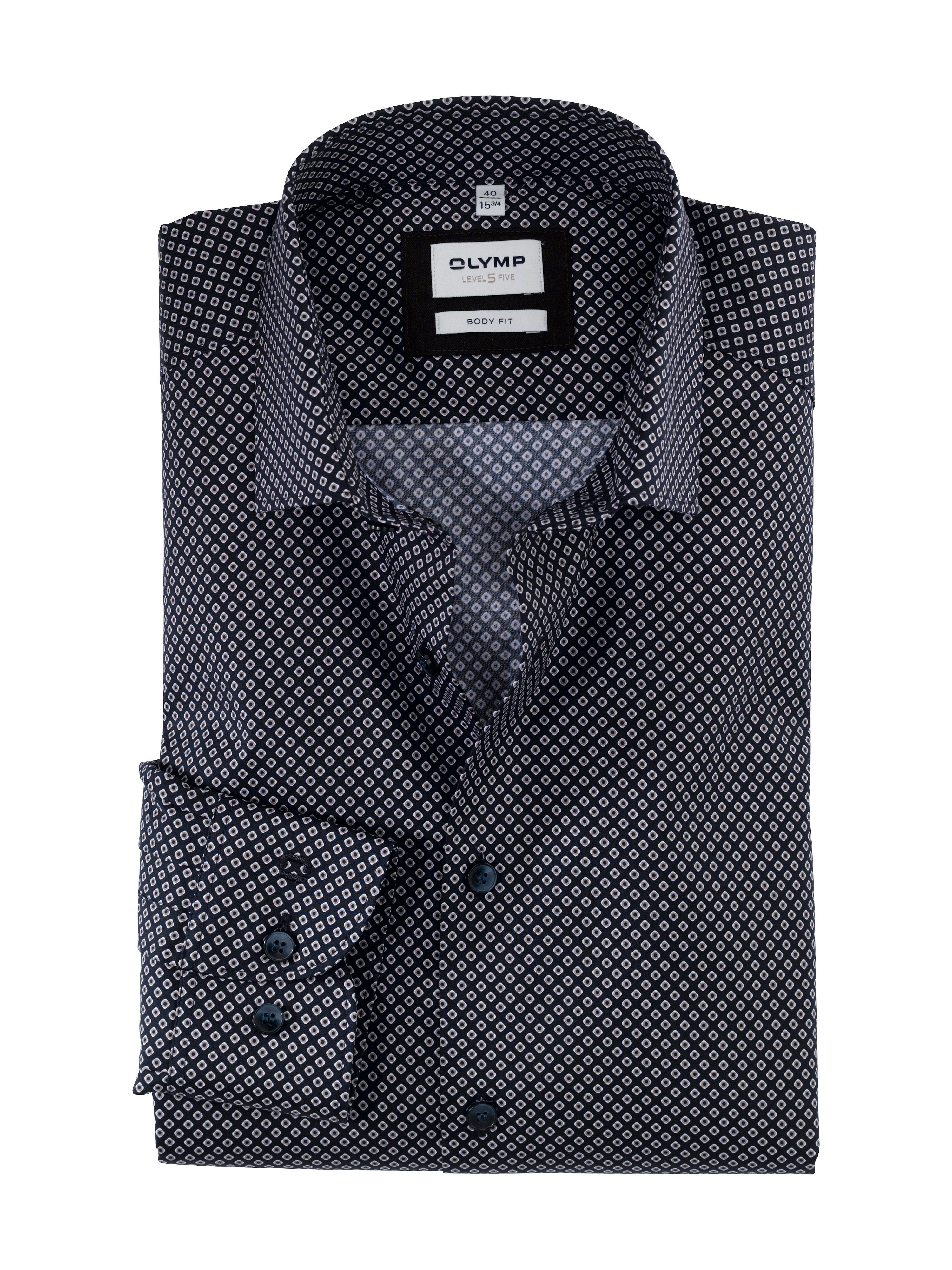 Auf der Suche nach dem perfekten Business-Outfit trifft der moderne Mann unweigerlich auf stilvolle Minimal-Dessins in Dresscode-Farben. Das OLYMP Level Five kombiniert die zeitlos beliebte Strategie mit dem linientypischen Body Fit, akzentuiert durch einen modischen Modern-Kent-Kragen. In logischer Konsequenz des körpernahen Schnitts wurde der hochwertige, glatte Baumwoll-Twill mit einem leichten Stretch-Anteil versehen. Ein rundum gelungener, zuverlässiger Business-Begleiter, hier in der Варианты mit extra-langem Arm.