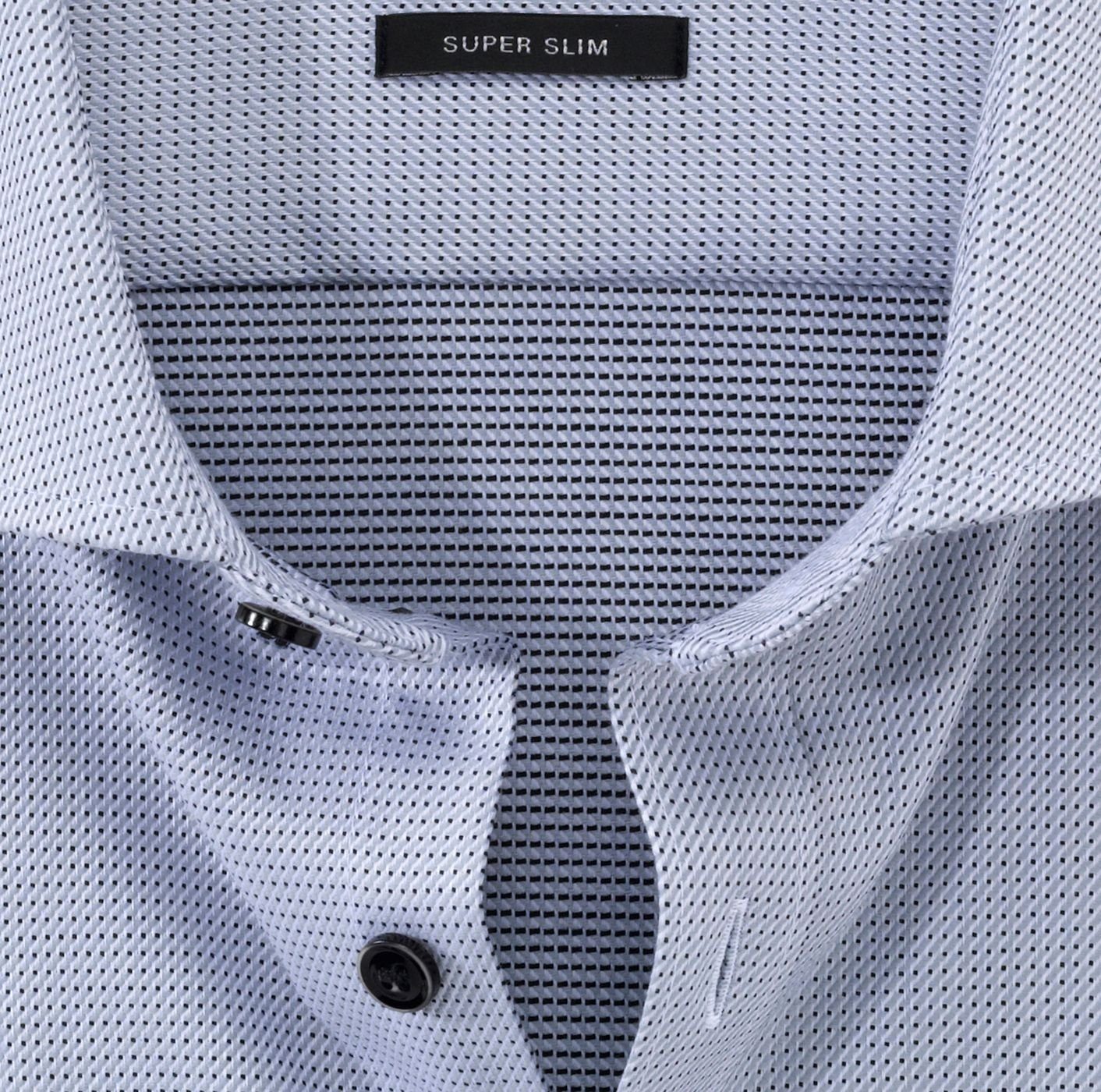 Das elegante Web-Dessin mit edlem Changé-Effekt und die superschlanke Linie verleihen diesem OLYMP No. Six super slim Businesshemd die besondere Note und garantieren einen unnachahmlich dynamischen Auftritt. Die kühl wirkende und angenehm strukturierte Textur aus reiner Baumwolle und stretchigen Elastolefin-Fasern punktet neben der formbeständigen Silhouette mit hautsympathischem Tragekomfort sowie pflege- und bügelleichter Funktionalität. Ausgestattet mit einem souveränen Royal Kent. OLYMP – Style und Statement.