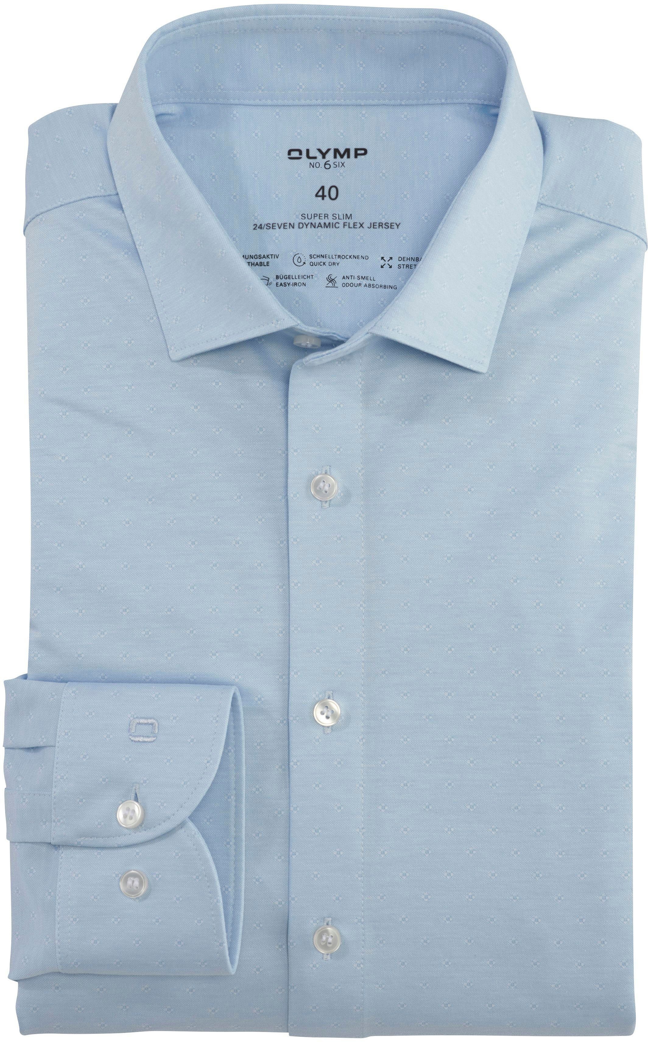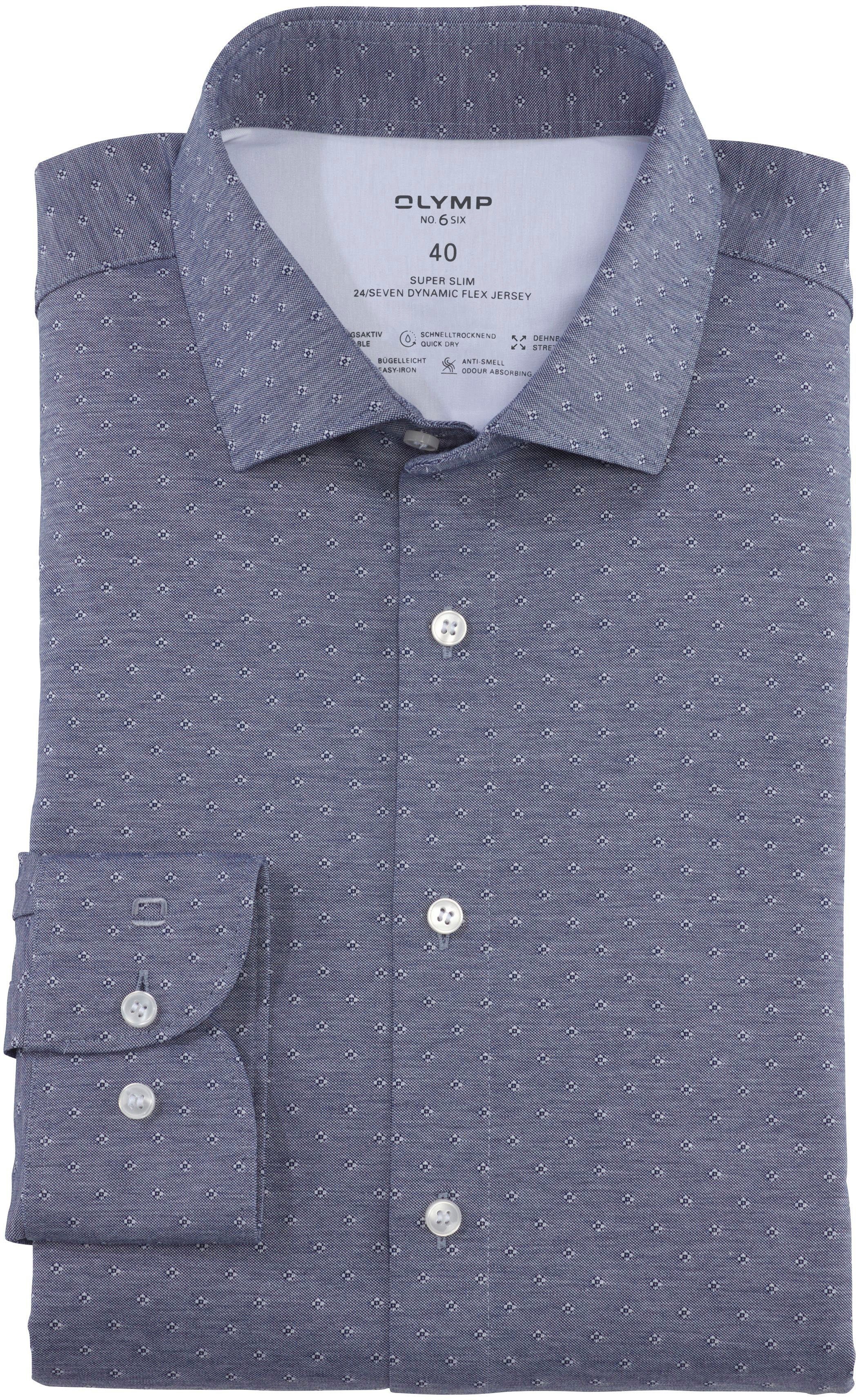 Mit dem Langarmhemd »No. Six 24/Seven super slim Jerseyhemd« von OLYMP lassen sich schnell neue Styles zusammenstellen. Individuell und trendy wird das Hemd durch die Logostickerei. Der Kentkragen ist der klassische Umlegekragen mit spitz zulaufenden Enden, der für unterschiedliche Krawattenknoten geeignet ist.